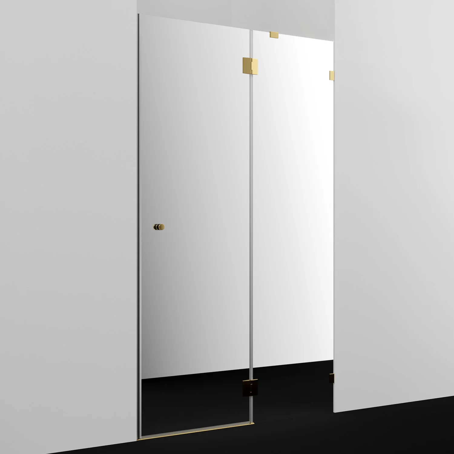 номинальный размер 1200x1000x2000, характеристики - закаленное стекло 8 мм, покрытие стекла WasserSchutz, распашной механизм на петлях из латуни, беспрофильное исполнение, крепление к стенефиксированными петлями из латуни, ручка нержавеющая сталь AISI304, силиконовый уплотнитель двери с магнитным замком, силиконовые уплотнители, комплект фурнируты, цвет фурнитуры: розовое золото, универсальная установка.