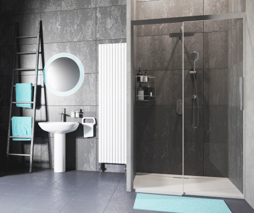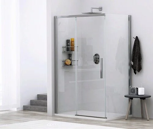 Закаленное прозрачное стекло 8 мм, Покрытие стекла WasserSchutz, Раздвижной механизм из нержавеющей стали с функцией Soft Close, Анодированный алюминиевый профиль 34 мм , Ручка двери из нержавеющей стали, Регулирующий профиль до 15 мм, Силиконовый уплотнитель двери с магнитным замком, Силиконовые уплотнители