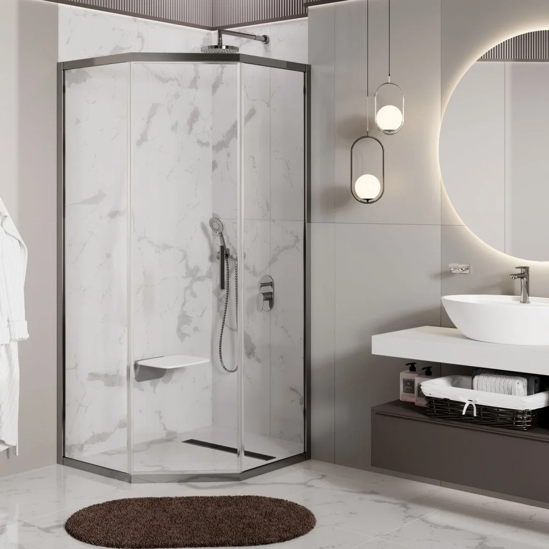 Характеристики:Закаленное прозрачное стекло 8 мм Покрытие стекла WasserSchutz Раздвижной механизм из цинкового сплава Анодированный алюминиевый профиль 32 мм Ручка двери из нержавеющей стали Регулирующий профиль до 10 мм Силиконовый уплотнитель дверей с магнитным замком Цвет профиля: серебристый