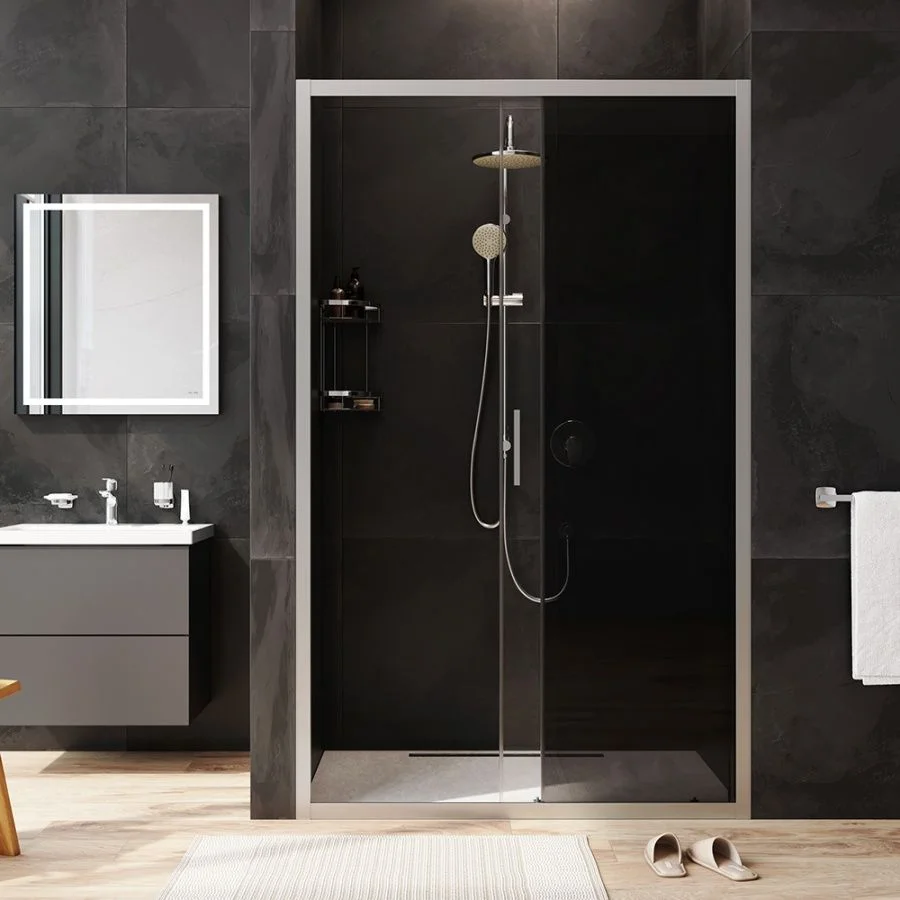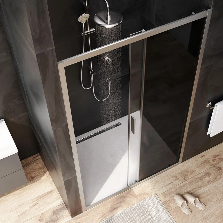 Душевая дверь отличается практичностью и функциональностью. Изделие произведено из ударопрочного закаленного стекла которое надежно фиксируется в нержавеющий алюминиевый профиль при помощи системы скрытых креплений.