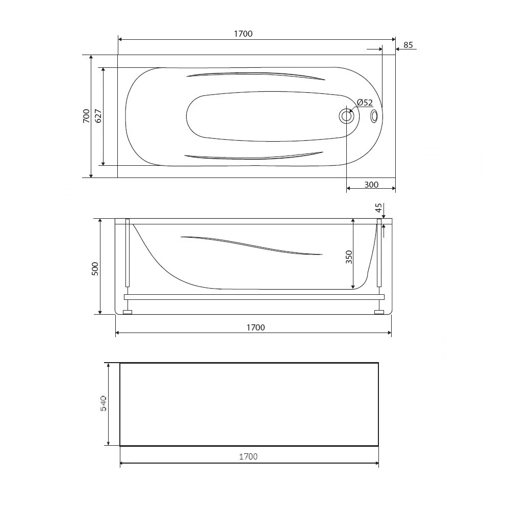 Экран для ванны фронтальный Damixa Willow WILL-170-070W-P