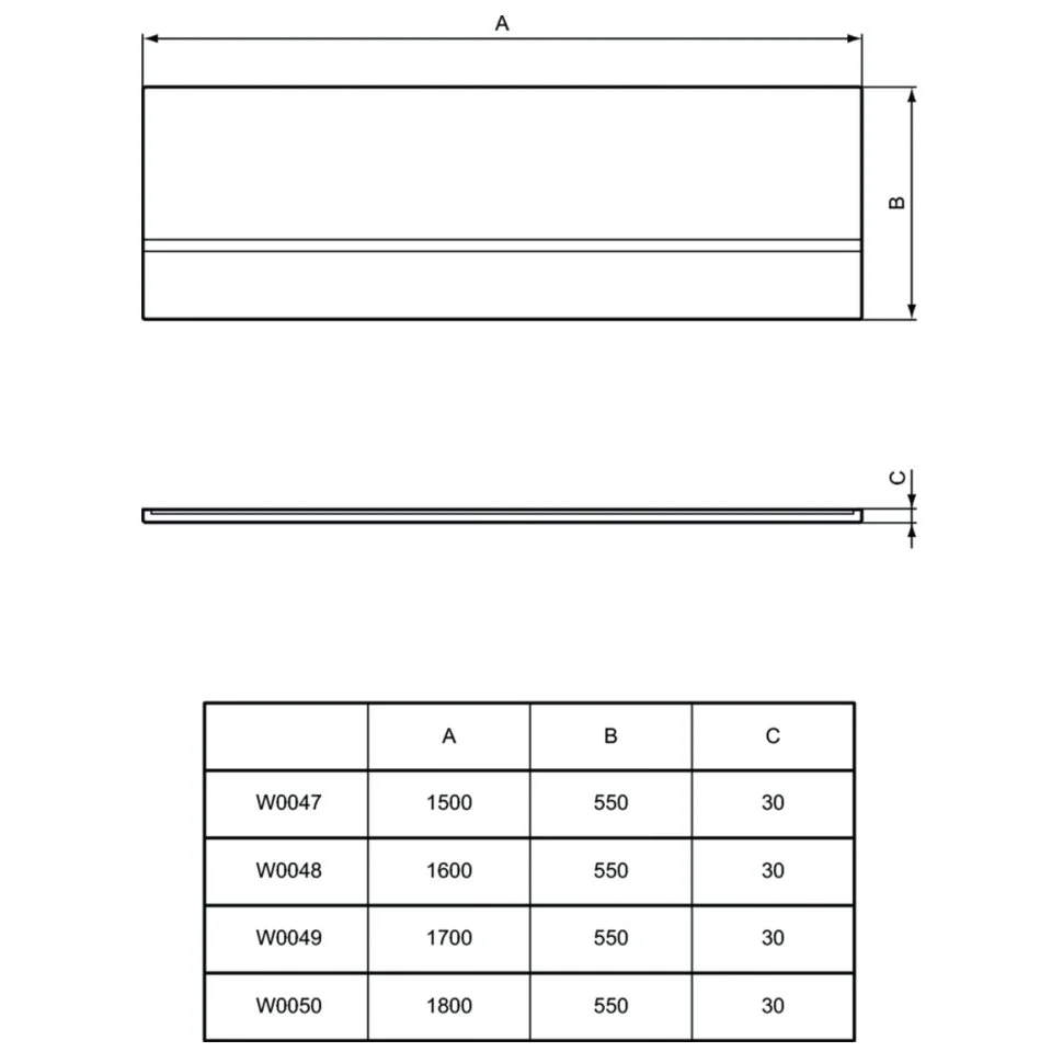 Экран для ванны фронтальный Ideal Standard W004801 SIMPLICITY 160 см