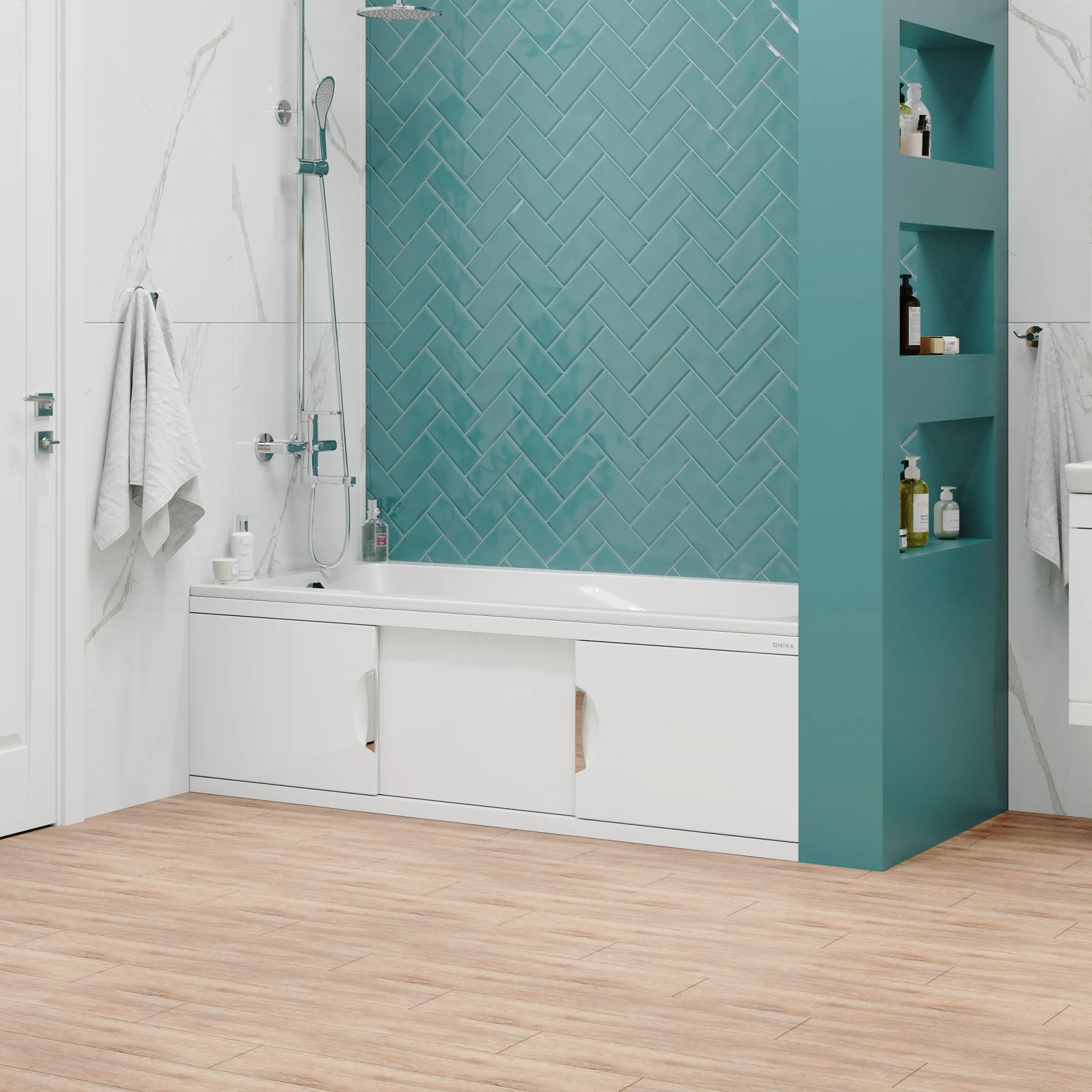 Экран Onika обладает повышенной износостойкостью, отлично переносит эксплуатацию в помещении с высокой влажностью и хорошо сочетается с любыми ваннами.