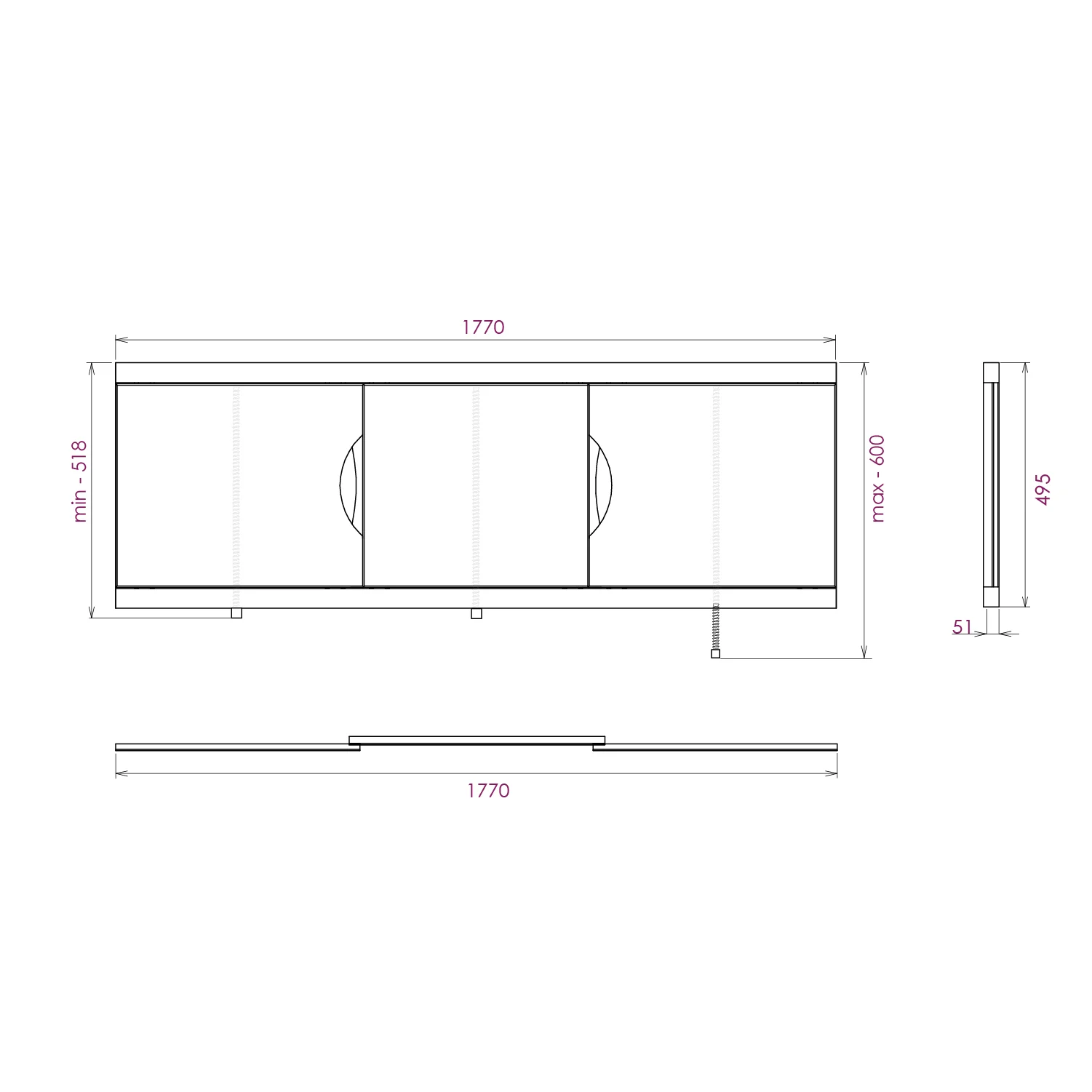 Ножки позволяют регулировать экран по высоте от 52 до 60 см, благодаря этому экран является универсальным и впишется в интерьер любой ванной комнаты.