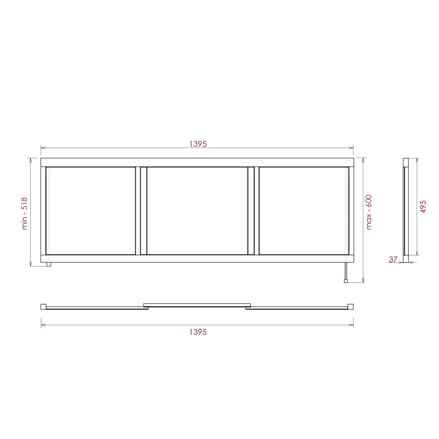 Ножки позволяют регулировать экран по высоте от 52 до 60 см, благодаря этому экран является универсальным и впишется в интерьер любой ванной комнаты.