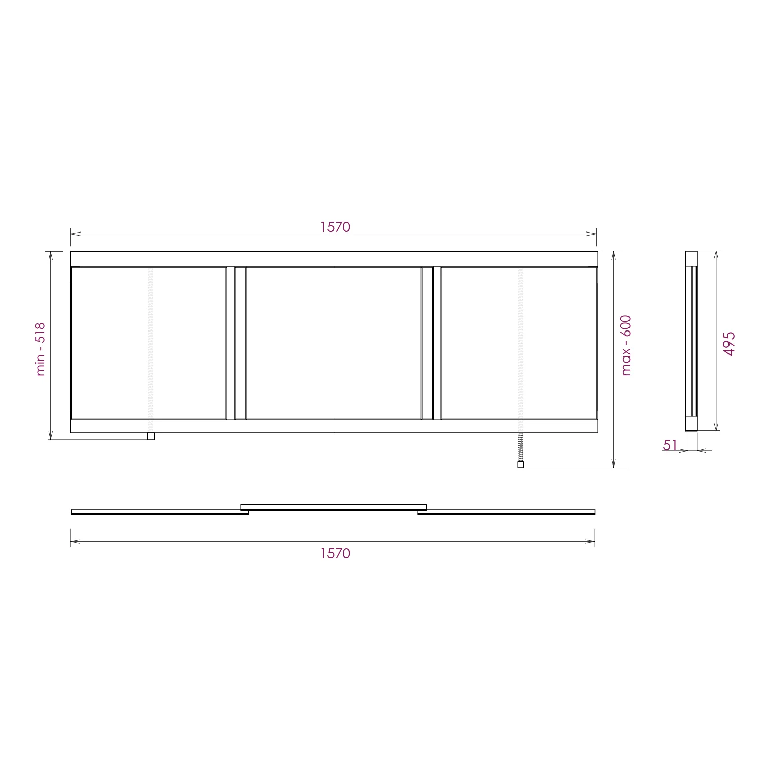 Ножки позволяют регулировать экран по высоте от 52 до 60 см, благодаря этому экран является универсальным и впишется в интерьер любой ванной комнаты.