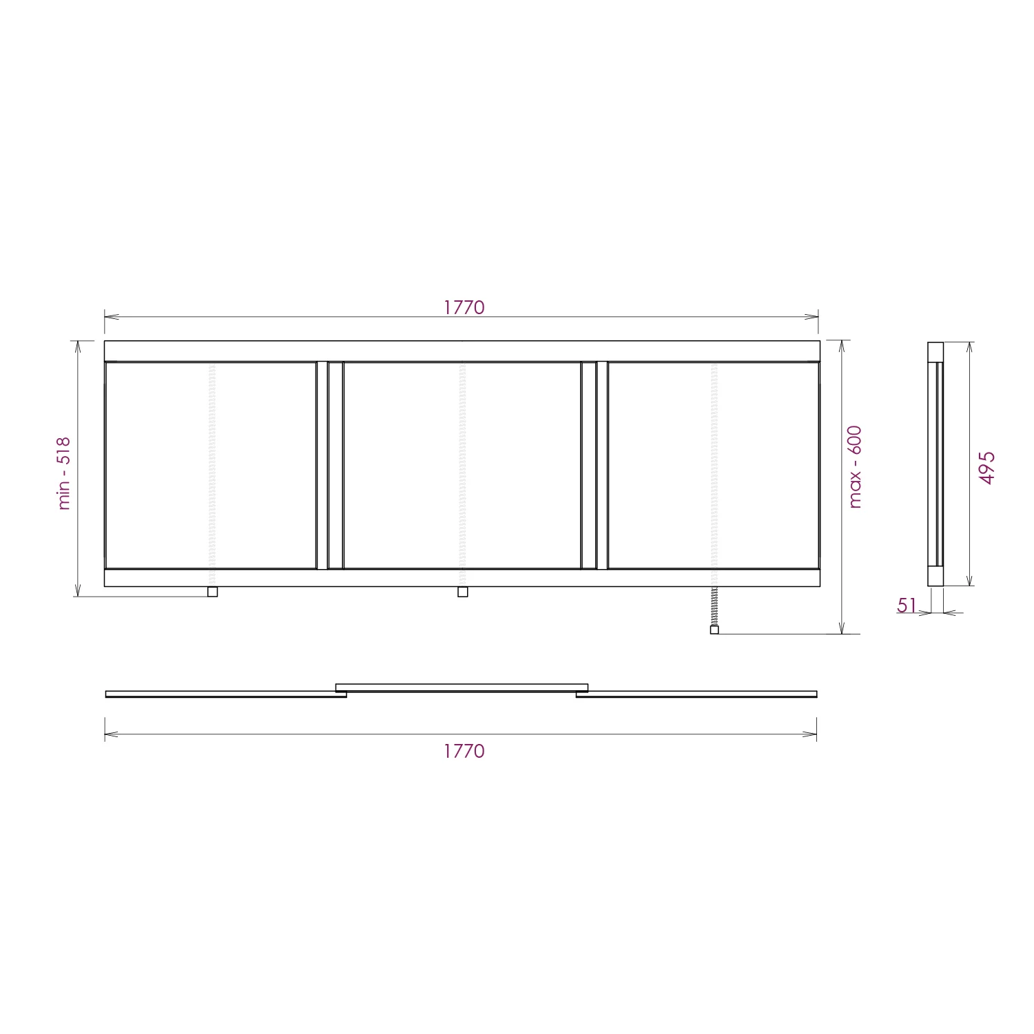 Ножки позволяют регулировать экран по высоте от 52 до 60 см, благодаря этому экран является универсальным и впишется в интерьер любой ванной комнаты.