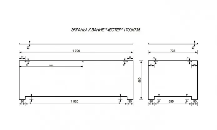 Экран фронтальный для ванны Эстет Chester silk 1700 ФР-00014661