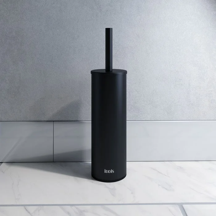 Напольный ерш с высоким корпусом из полированной нержавеющей стали с хромированным покрытием и черной щеткой. Благодаря универсальному стилю подойдет для любой туалетной комнаты. Внутри находится колба из толстого ABS-пластика, которая легко вынимается и моется, не впитывает запахи; колба надежно зафиксирована в корпусе ерша специальными «ушками».