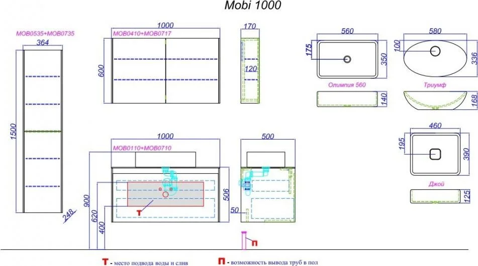 Купить Тумбы подвесные производства AQWELLA (Россия), коллекция Mobi, код товара: 93033 можно выгодно в Сантемо.ру: