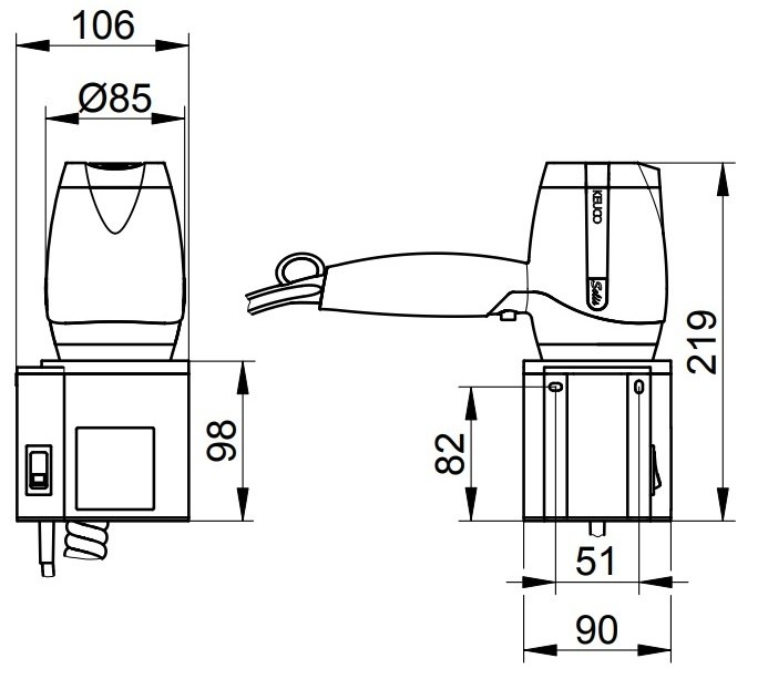 Фен Keuco Plan 14995010037 с настенным креплением, 220-240 В, 50-60 Гц, хром/темно-серый Keuco UNIVE