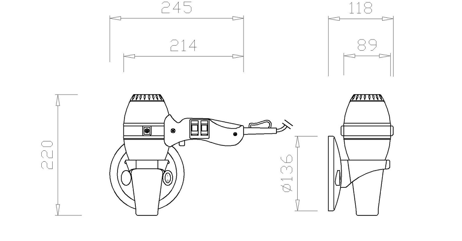 Фен настенный с антивандальной защитой оборудован мощным двигателем и стильным корпусом с антивандальной защитой Напряжение: 220-240 V / 50-60 Hz.