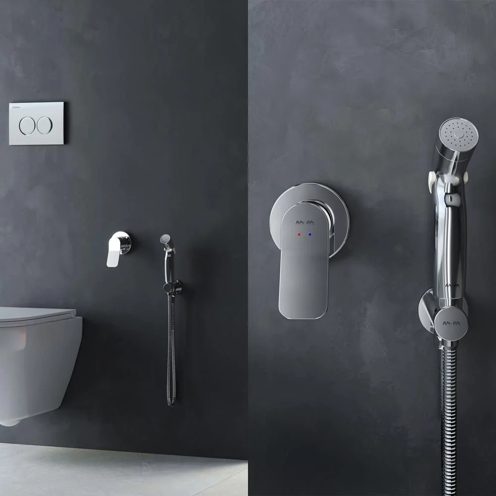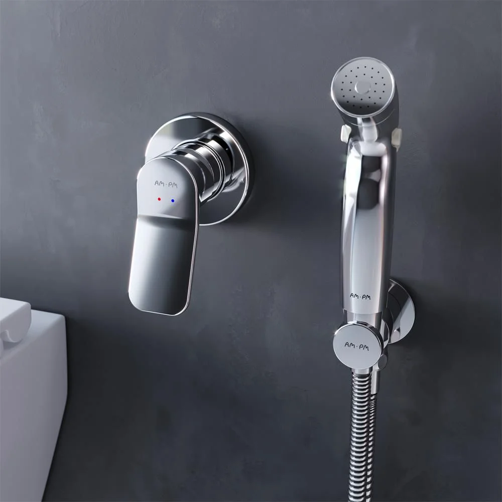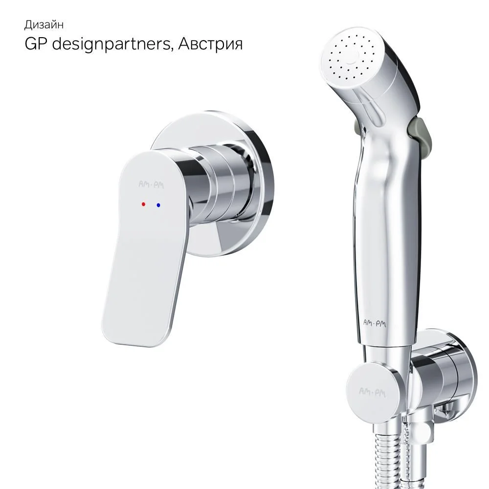 Готовое решение X-Joy включает в себя стильный смеситель для душа монтируемый в стену шланговое присоединение с боковым расположением держателя для гигиенической лейки гигиеническую лейку и душевой шланг длиной 1500 мм.
