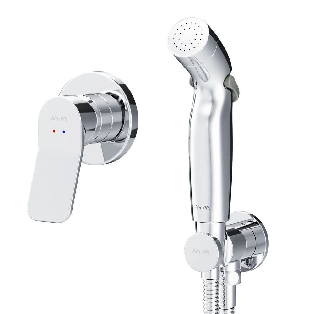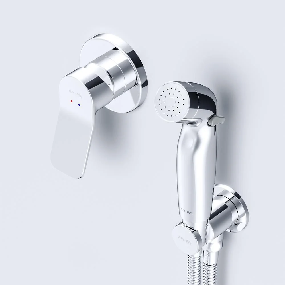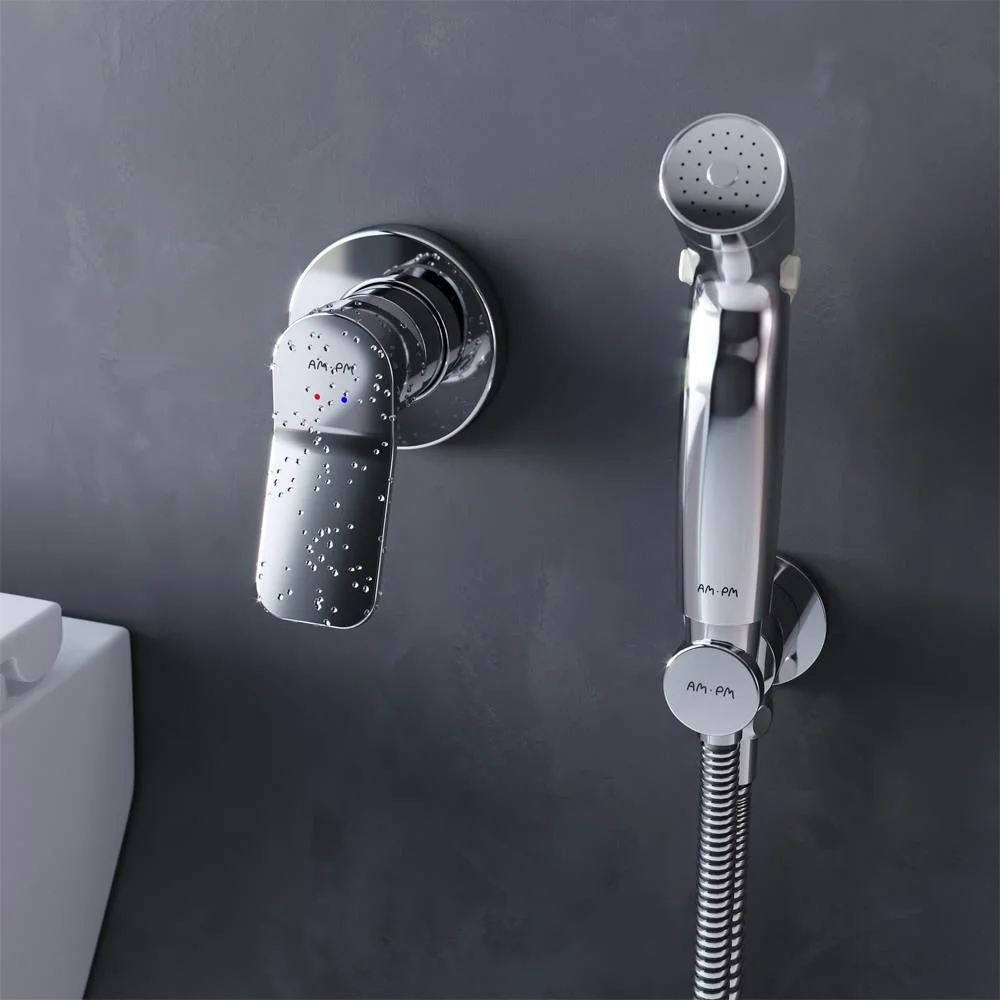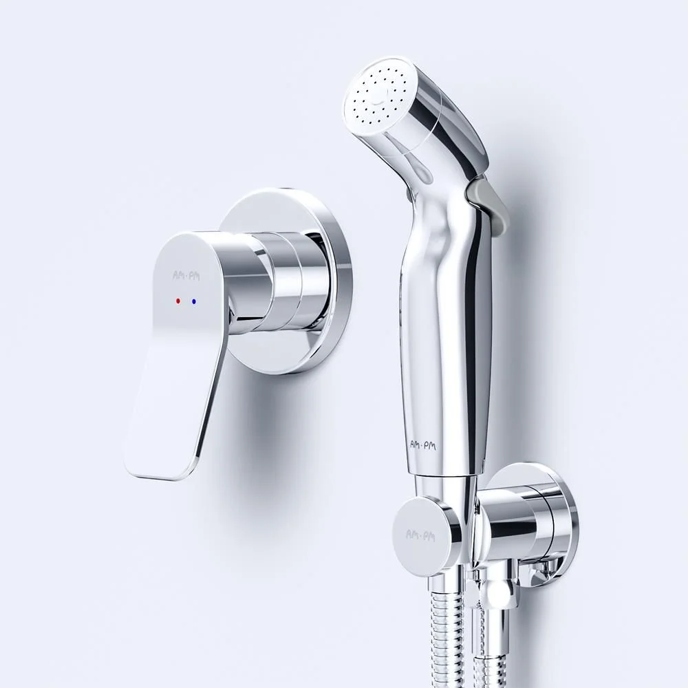 Готовое решение X-Joy включает в себя стильный смеситель для душа монтируемый в стену шланговое присоединение с боковым расположением держателя для гигиенической лейки гигиеническую лейку и душевой шланг длиной 1500 мм.