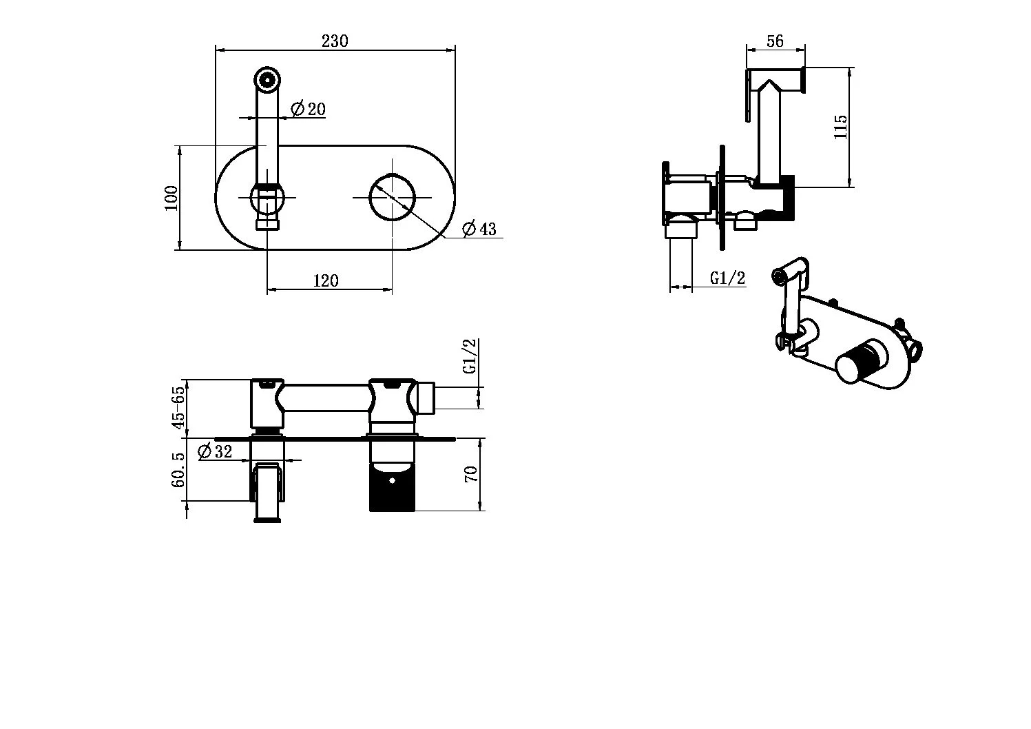 Гигиенический душ Boheme Stick 127-BRB.3 BRUSHED BRONZE ручка LINEA