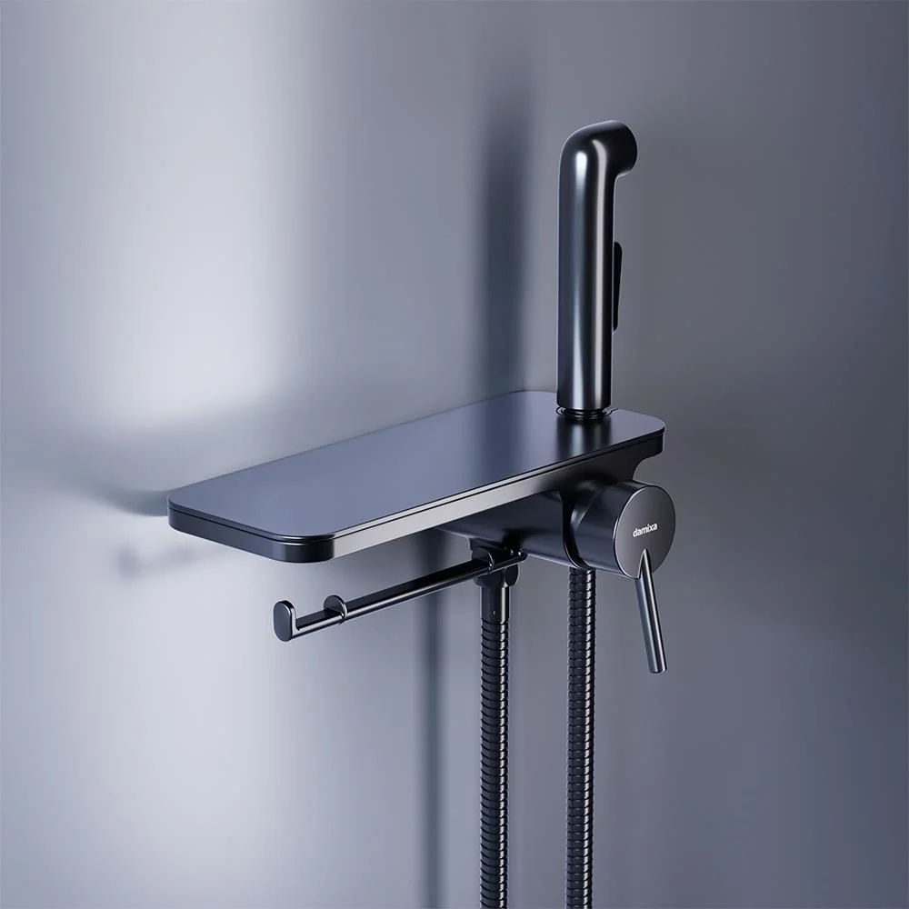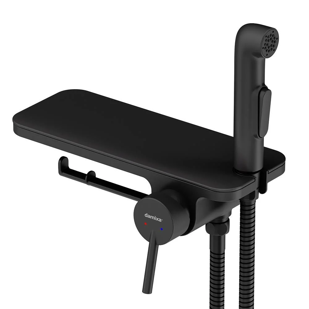 Современное решение для вашего удобства и гигиены теперь в новом исполнении. Матовый черный смеситель с гигиеническим душем отличается простотой и комфортом в использовании а еще он выглядит невероятно стильно. Самое практичное гигиеническое решение: смеситель оснащен удобной полочкой на которой поместится все что необходимо под рукой и держателем для туалетной бумаги.
