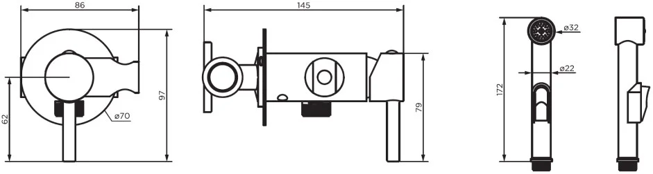 Гигиенический душ DIWO Казань DW-KAZ-45-022 со смесителем, С ВНУТРЕННЕЙ ЧАСТЬЮ 574338