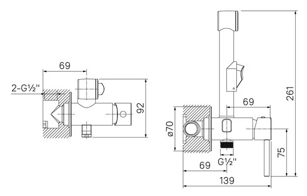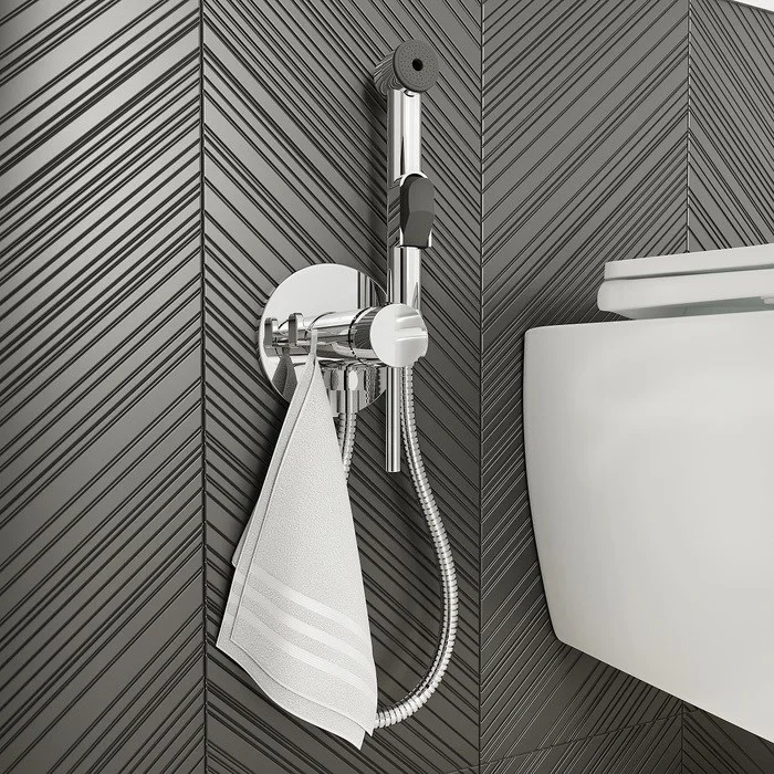 Встраиваемый смеситель с гигиеническим душем и крючком для полотенца, круглый, однозахватный, латунь, керамический картридж Softap. В комплекте: шланг 1.2м, гигиеническая лейка ABS-пластик. Упаковка: картонная коробка, индивид мешок.