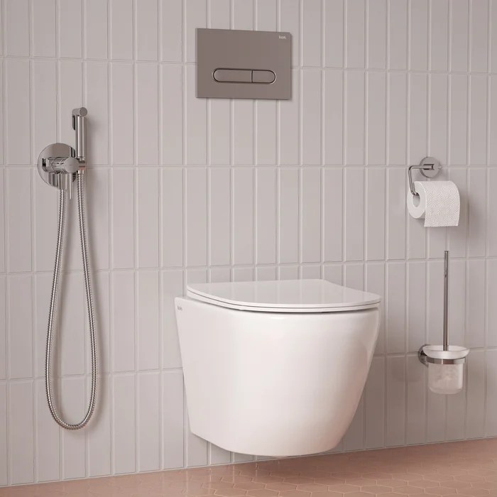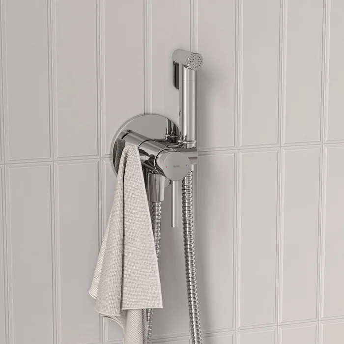Гигиенический душ Axes в универсальном хроме – практичный и стильный, его дизайн сочетает в себе трендовый минимализм форм и округлые формы. Имеет крючок для полотенца, который можно установить как слева, так и справа, меняя местами с держателем для лейки. Душевой шланг с защитой от перекручивания в комплекте (длина 1,2 м).