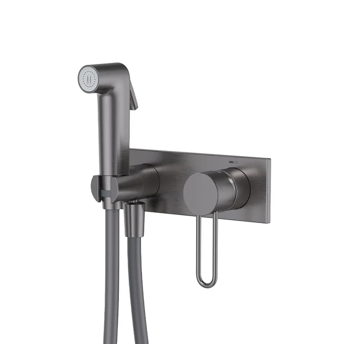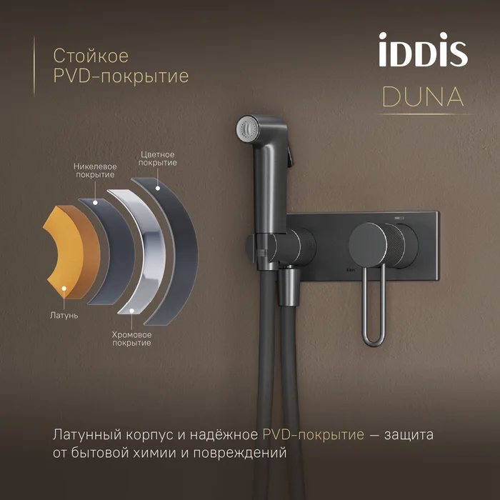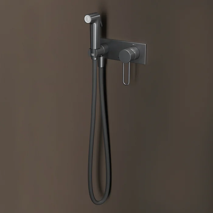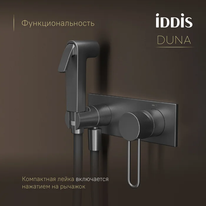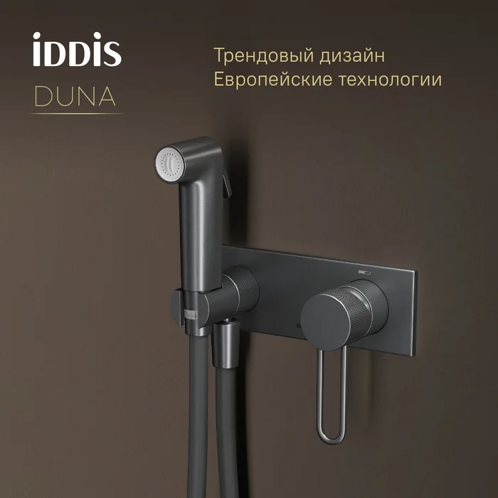 Смеситель с Гигиенический душем Duna – воплощение актуальных трендов в дизайне смесителей в безупречном исполнении: фрезеровка, изысканная ручка-петля, модные цвета и фактуры.
