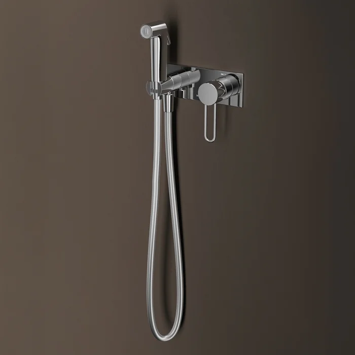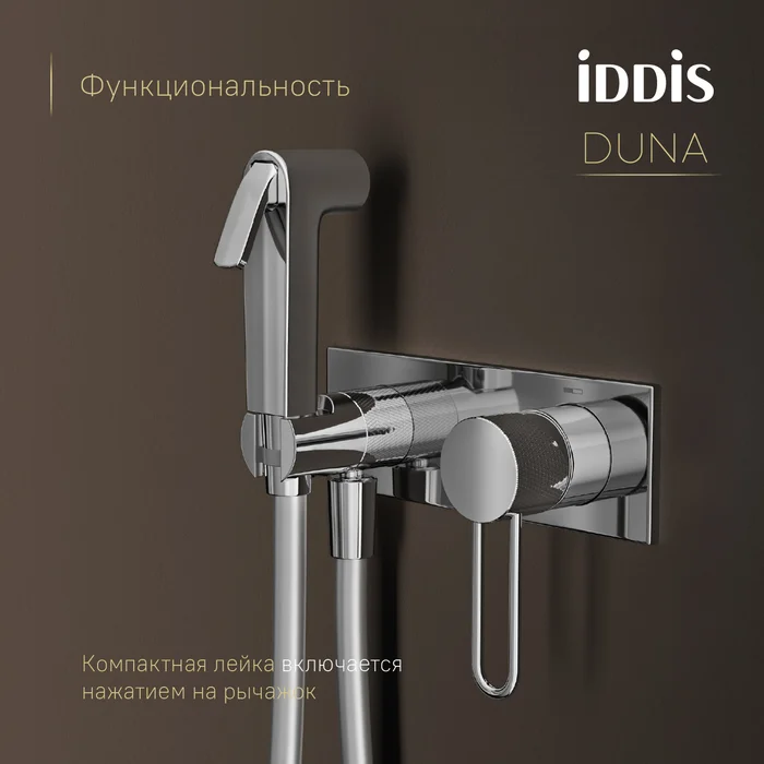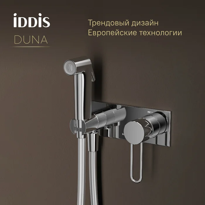 Смеситель с Гигиенический душем Duna – воплощение актуальных трендов в дизайне смесителей в безупречном исполнении: фрезеровка, изысканная ручка-петля, модные цвета и фактуры.