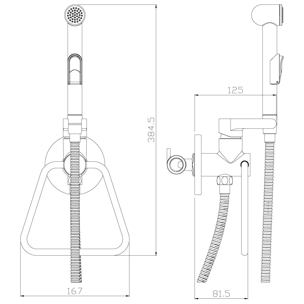 • Аксессуары в комплекте (шланг 1,2 м, лейка для биде с нажимным механизмом)