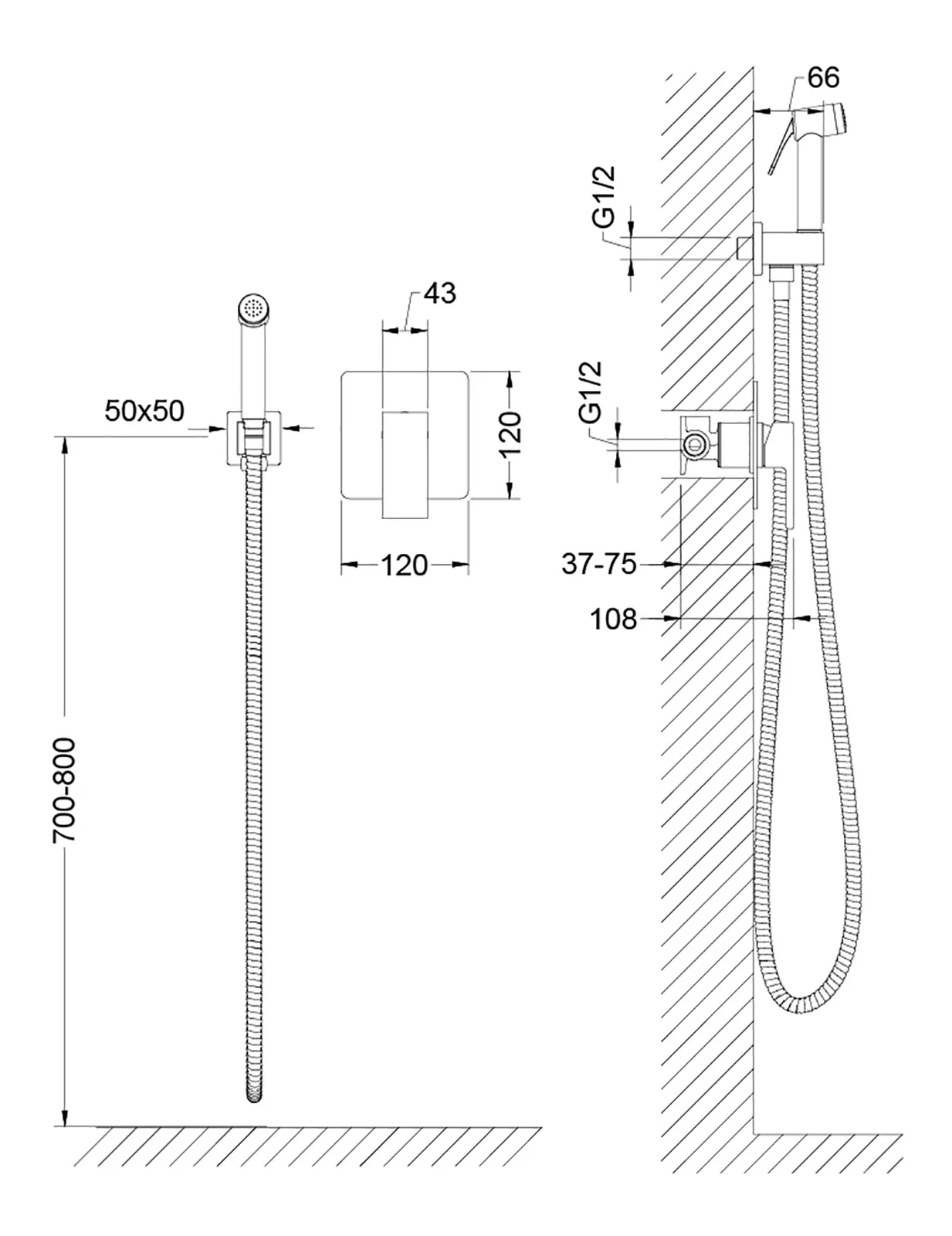 • Смеситель скрытого монтажа, с гигиеническим душем
