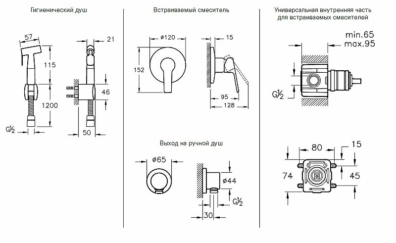Готовый встроенный набор для установки гигиенического душа. В комплект поставки входит: смеситель, скрытая часть, гигиенический душ, держатель
