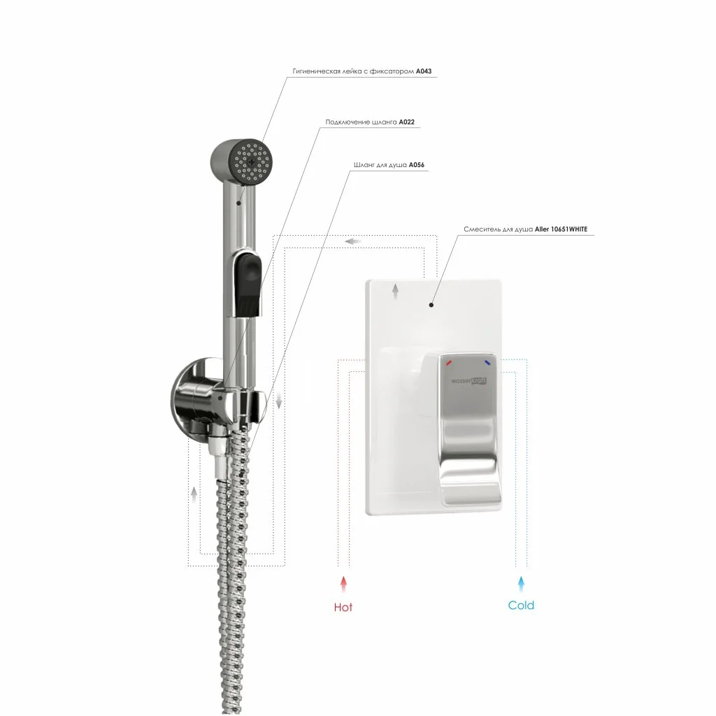 Входит в комплектСмеситель для душа Aller 10651WHITE Подключение шланга A022 Ш