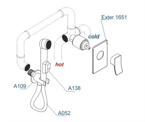 Входит в комплектСмеситель для душа Exter 1651 Подключение шланга A109 Шланг д