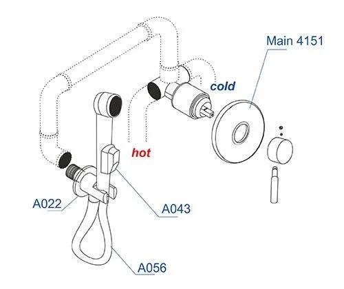 Входит в комплектСмеситель для душа Main 4151 Подключение шланга A022 Шланг дл