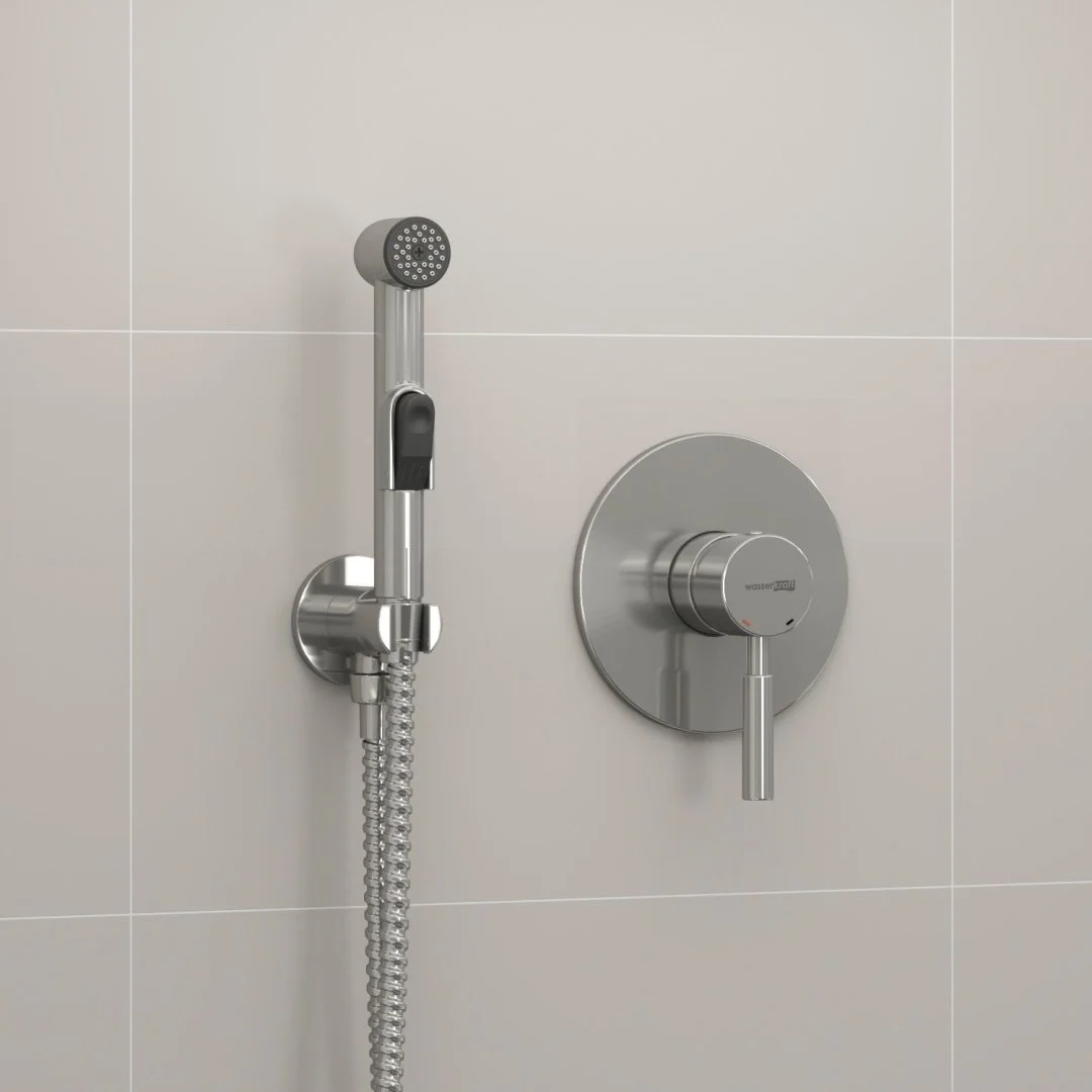 Характеристики Керамический картридж 35мм, Sedal (Испания) Фиксированное настенное крепление для лейки Комплект скрытого монтажа Наружная часть смесителя Силиконовые форсунки с системой защиты от известковых отложений Длина шланга 150 см