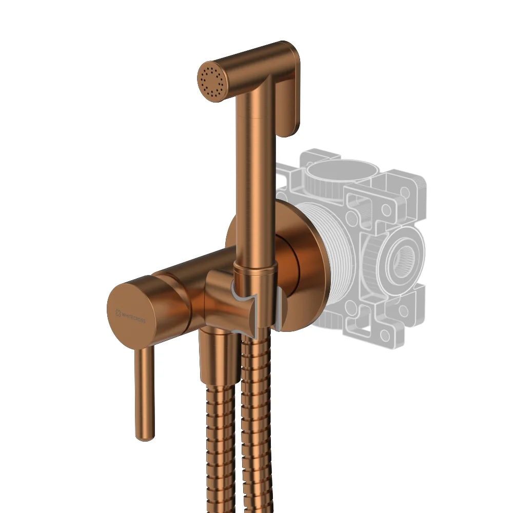 - гигиенический душ с кнопкой выключения воды: латунь;
