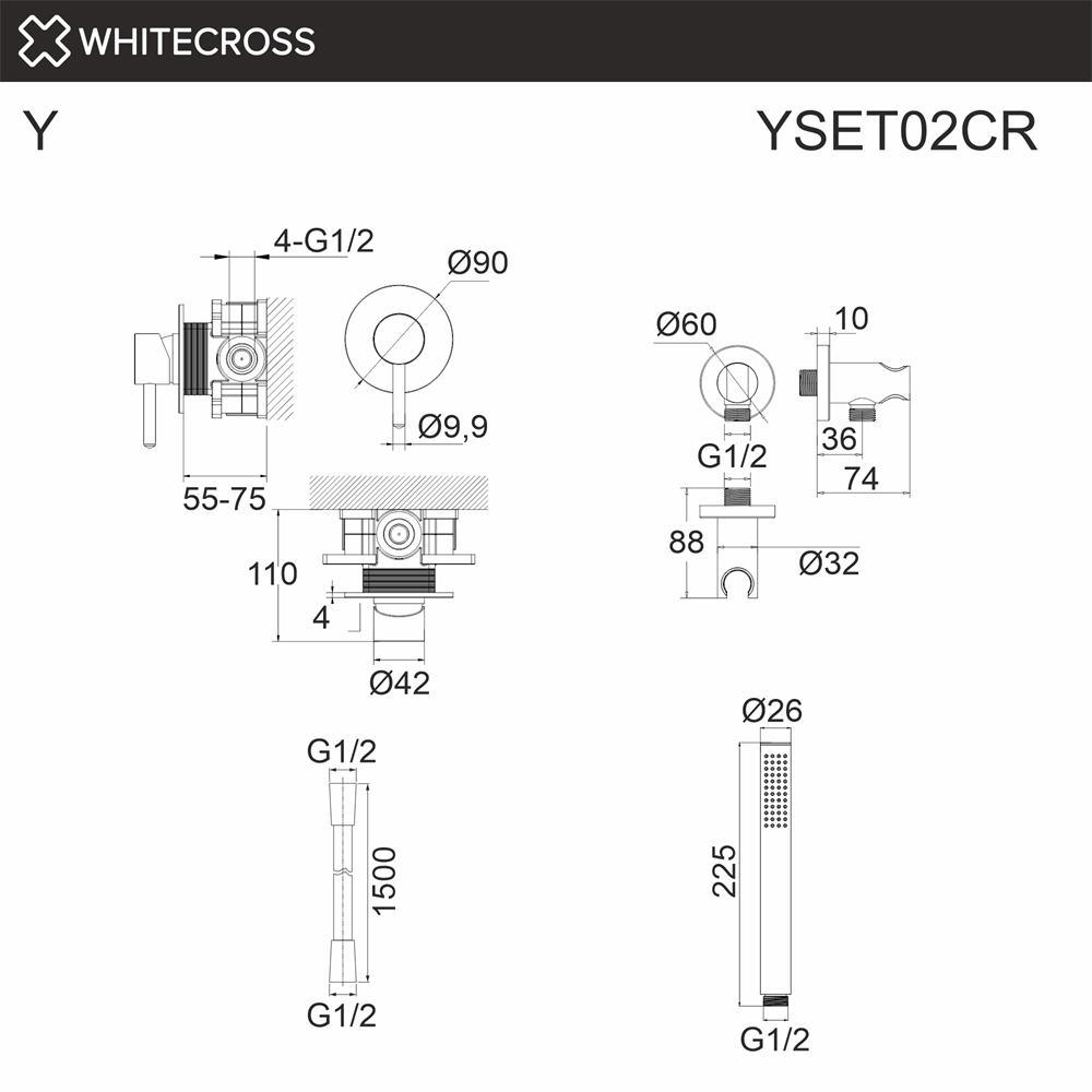 Смеситель для душа WHITECROSS Y YSET02CR (хром) с ручным душем, скрытого монтажа