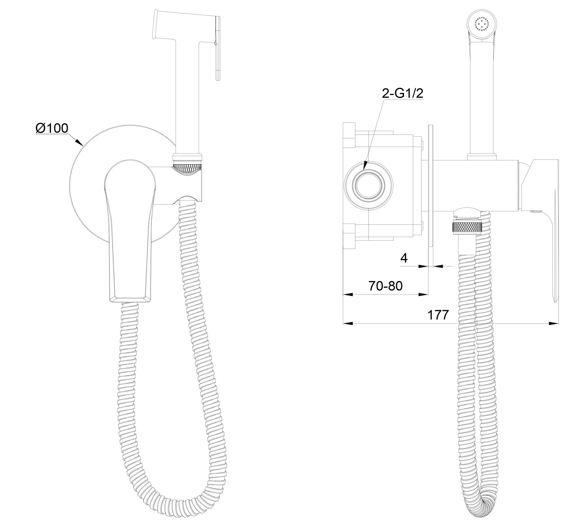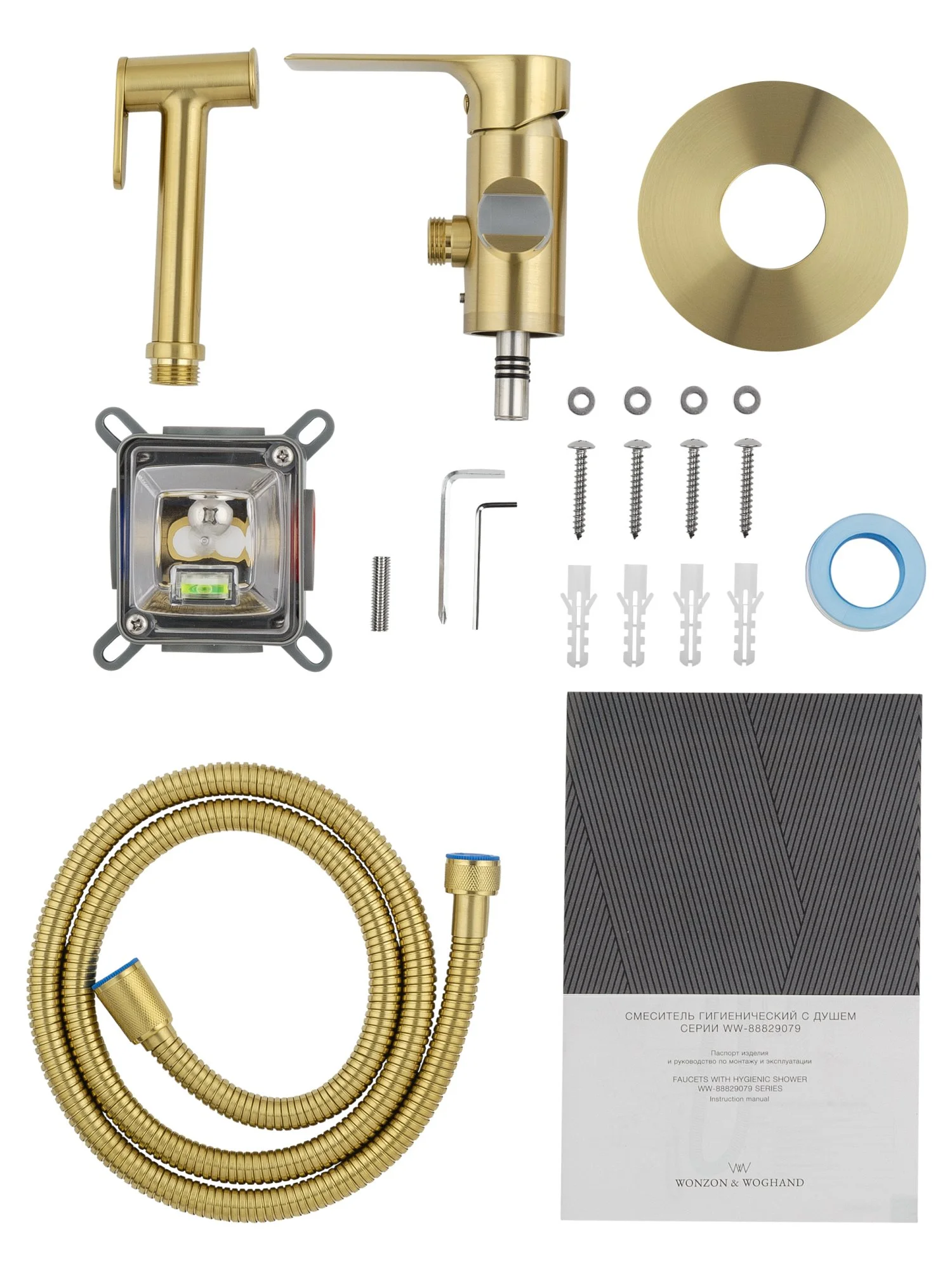 смеситель, душевой шланг, держатель для душа, лейка гигиенического душа, монтажный комплект