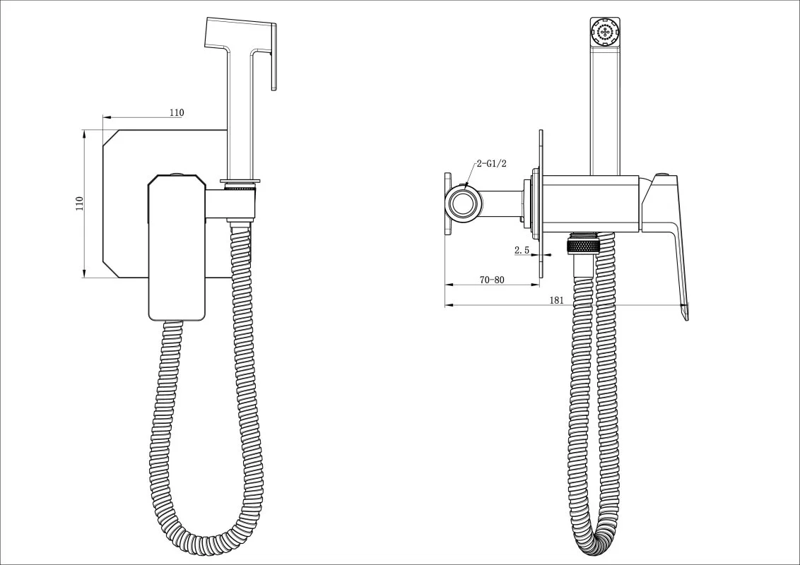 смеситель, душевой шланг, держатель для душа, лейка гигиенического душа, монтажный комплект