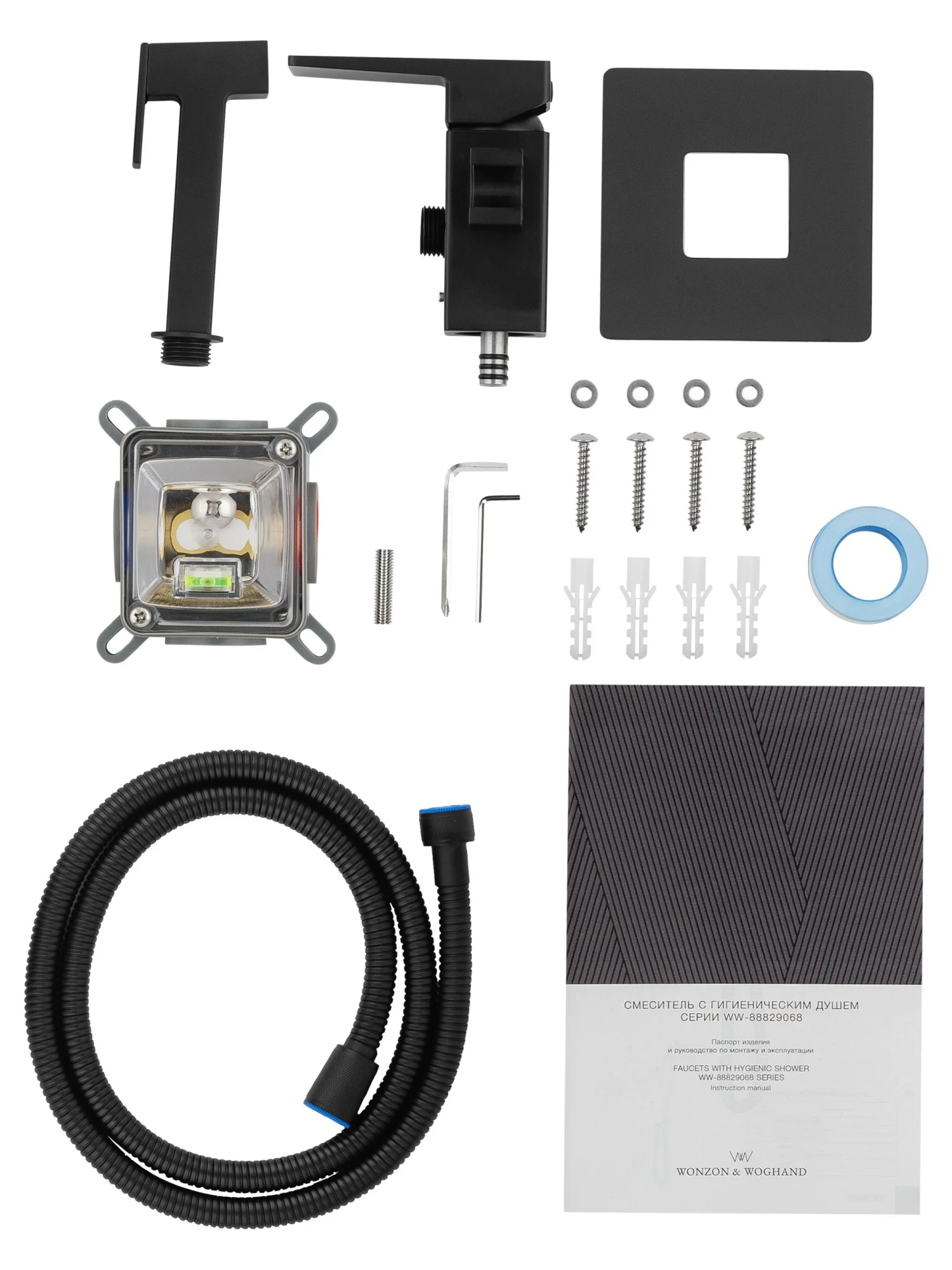 смеситель, душевой шланг, держатель для душа, лейка гигиенического душа, монтажный комплект