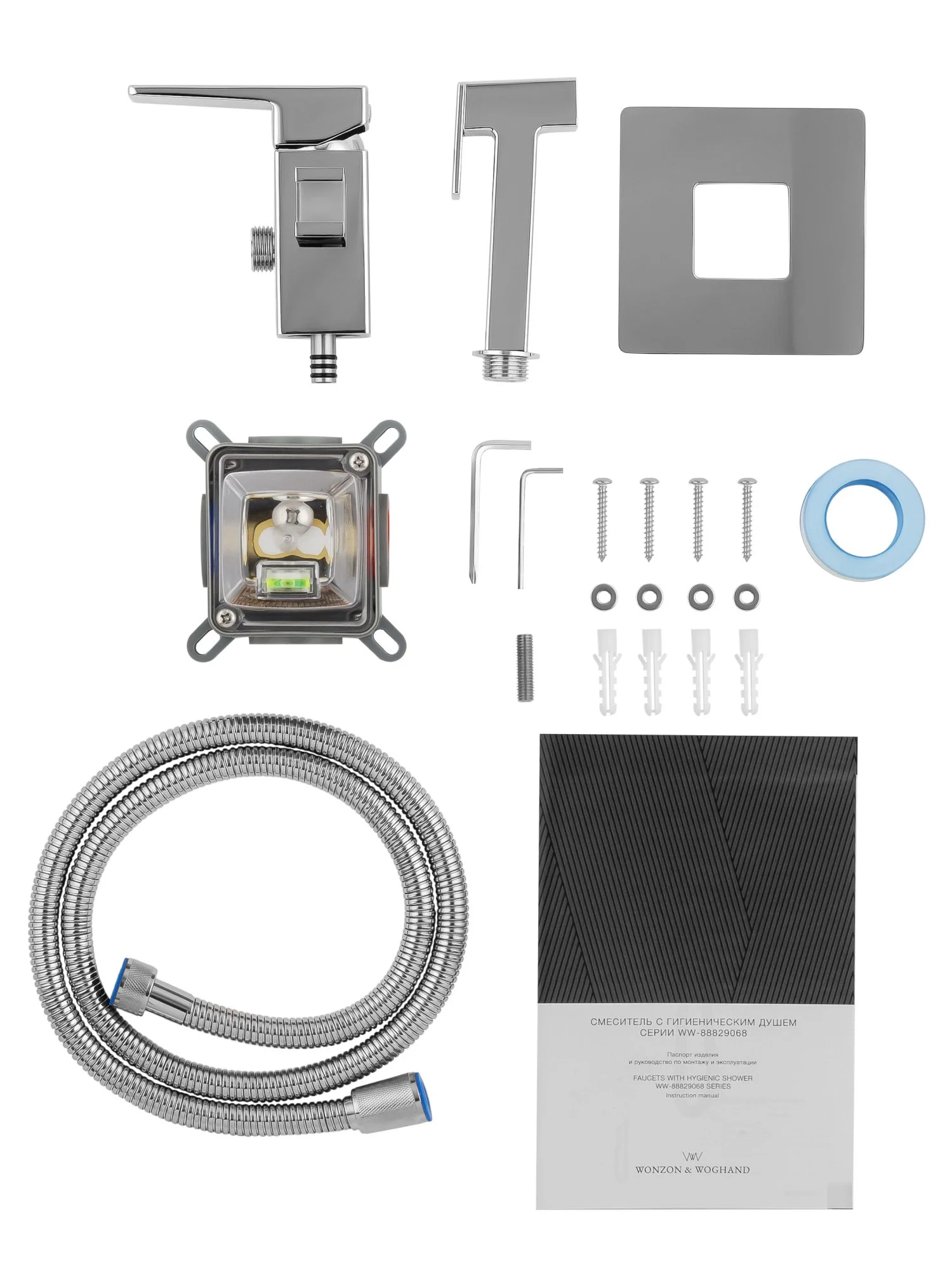смеситель, душевой шланг, держатель для душа, лейка гигиенического душа, монтажный комплект