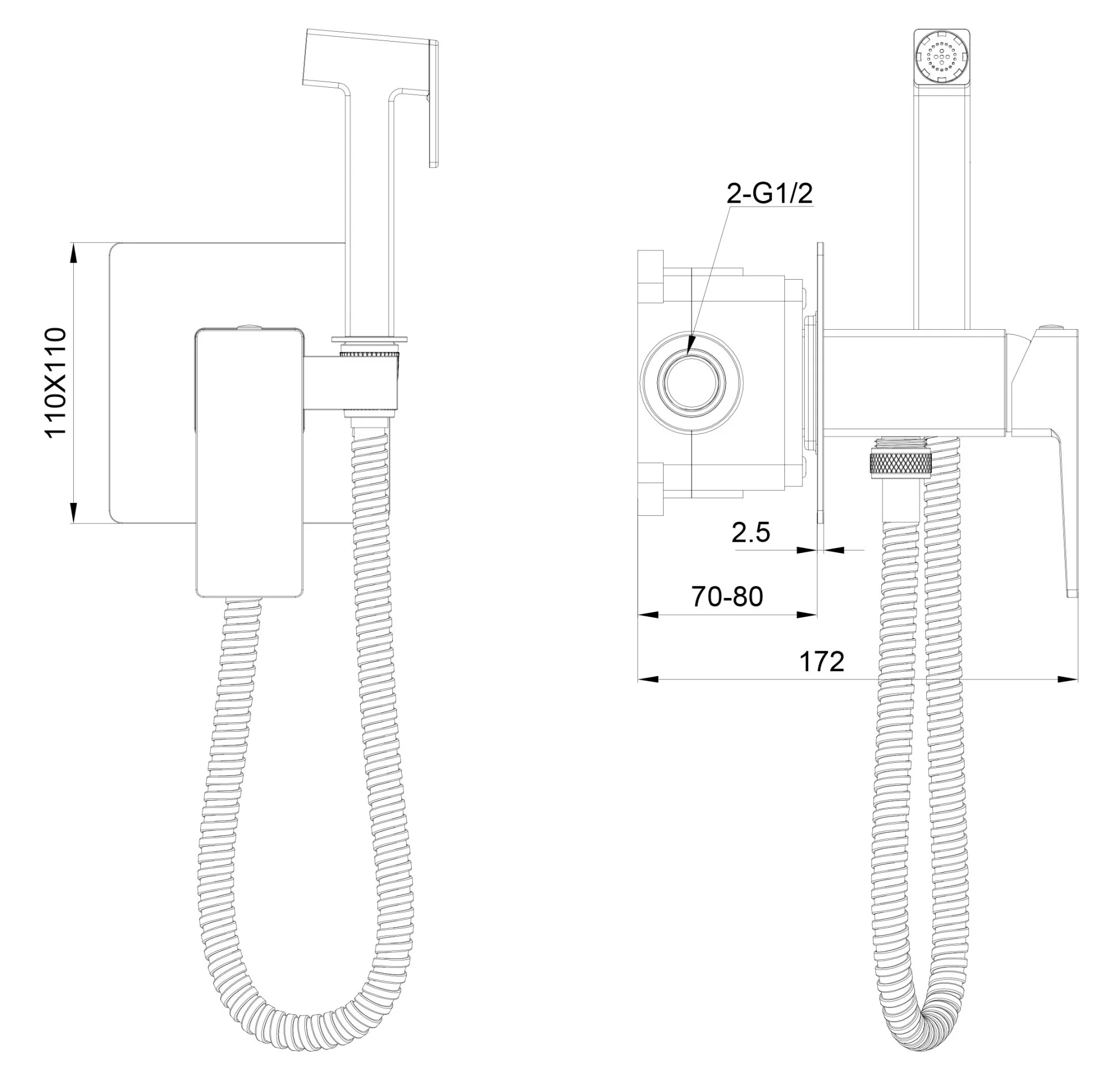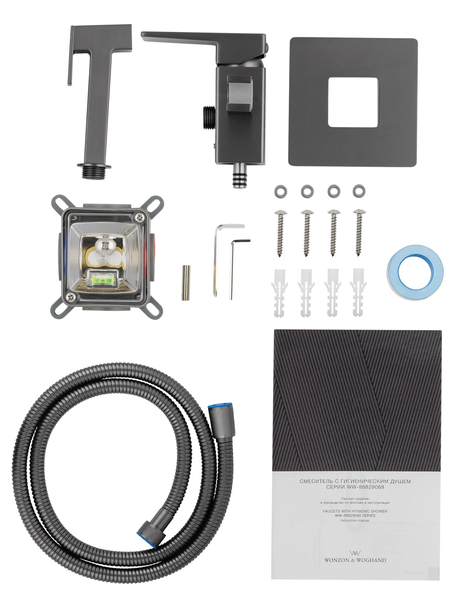 смеситель, душевой шланг, держатель для душа, лейка гигиенического душа, монтажный комплект