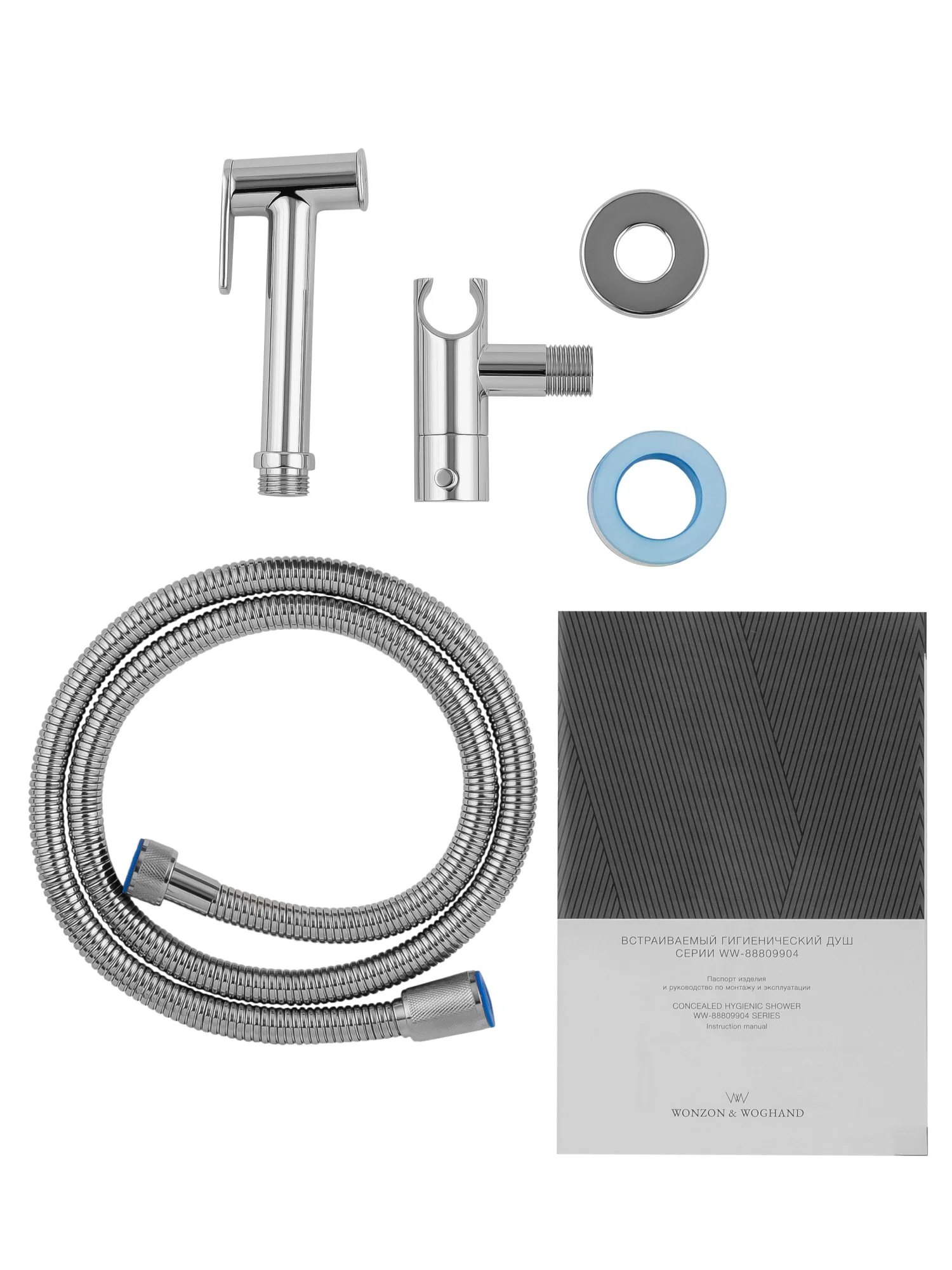 корпус, душевой шланг, держатель для душа, лейка гигиенического душа, монтажный комплект