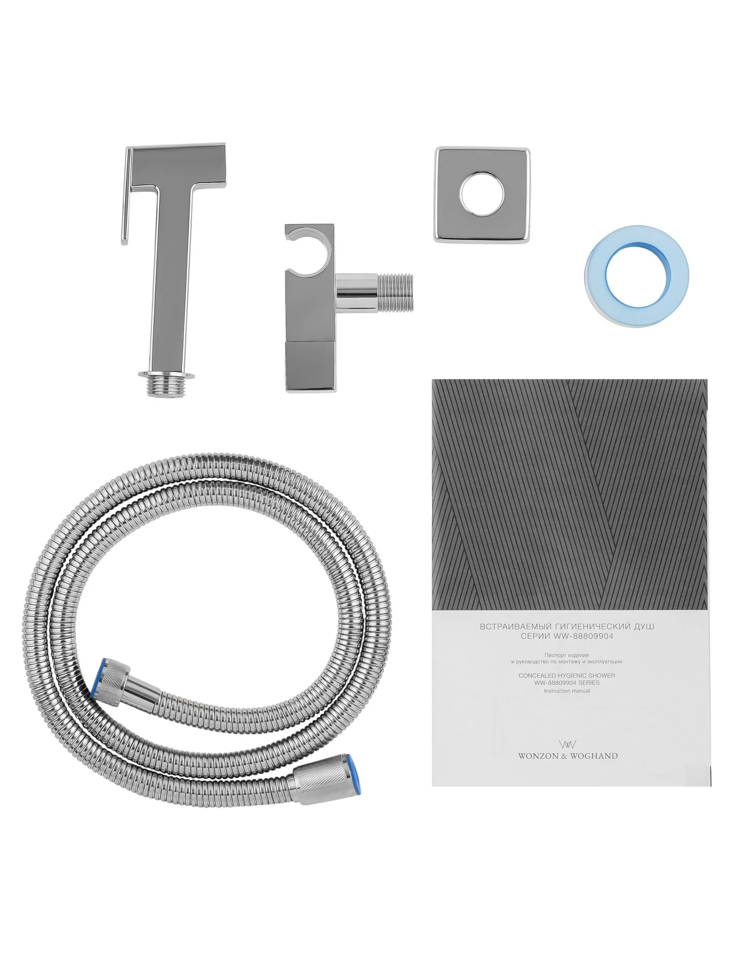 корпус, душевой шланг, держатель для душа, лейка гигиенического душа, монтажный комплект
