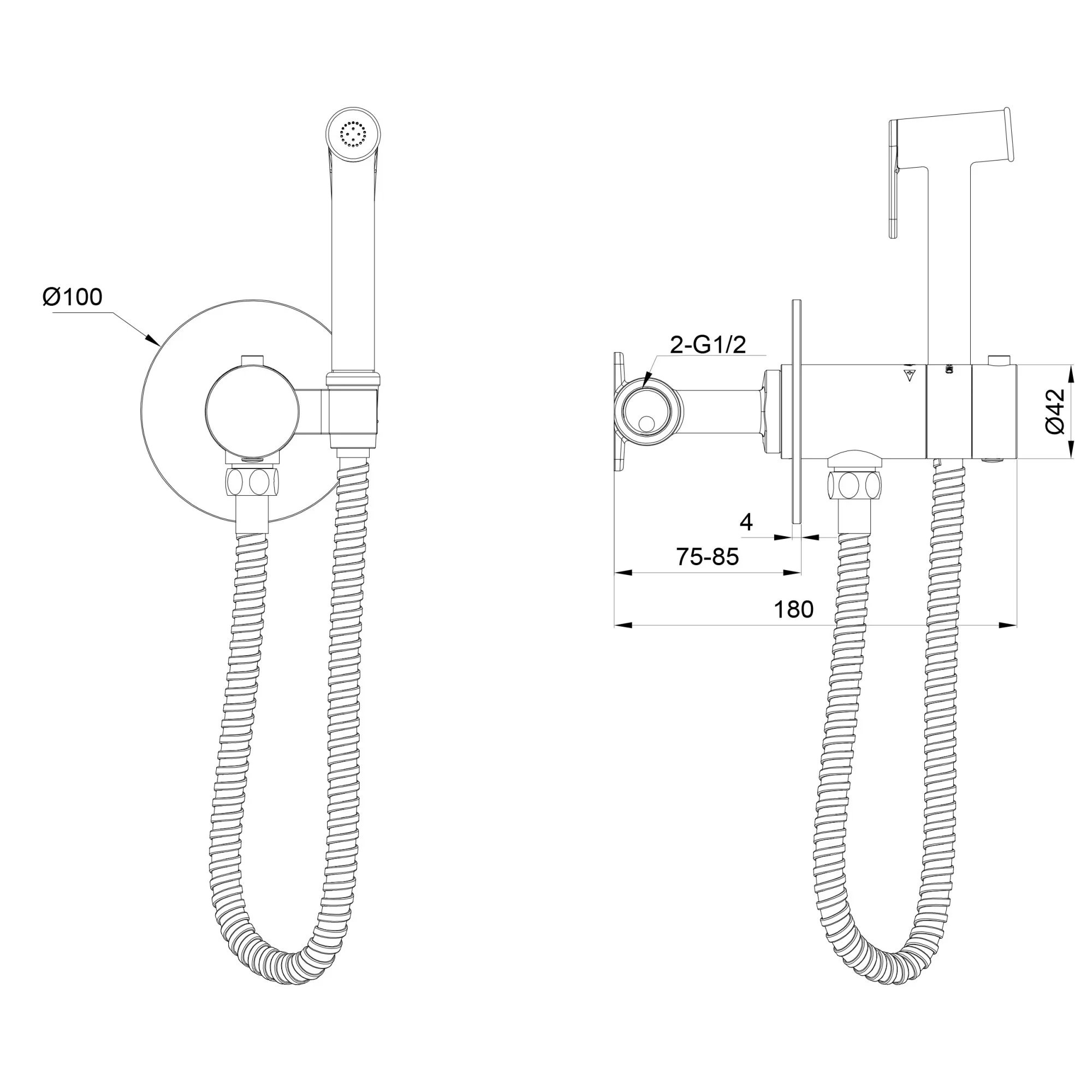 смеситель, душевой шланг, держатель для душа, лейка гигиенического душа, монтажный комплект
