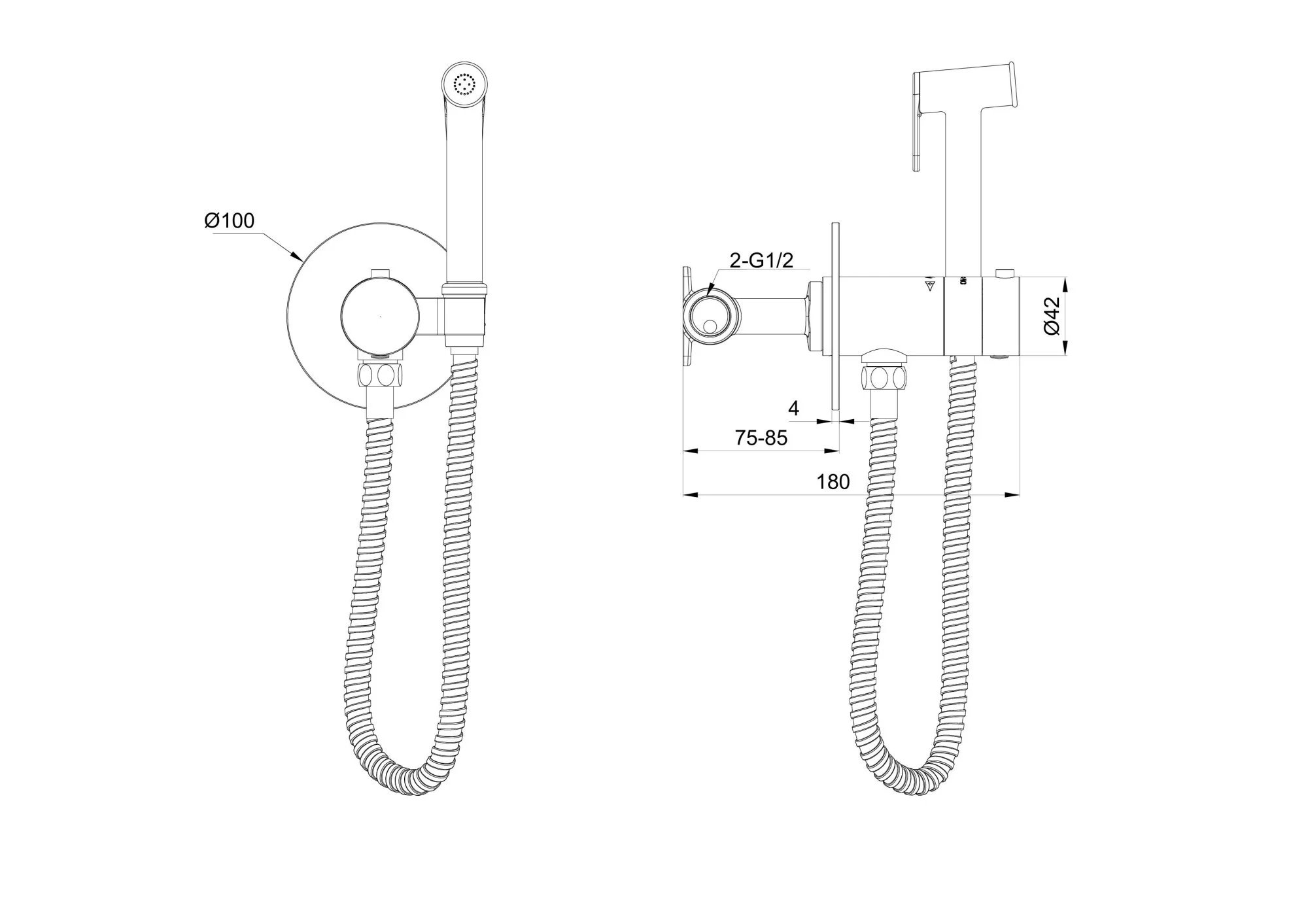 смеситель, душевой шланг, держатель для душа, лейка гигиенического душа, монтажный комплект