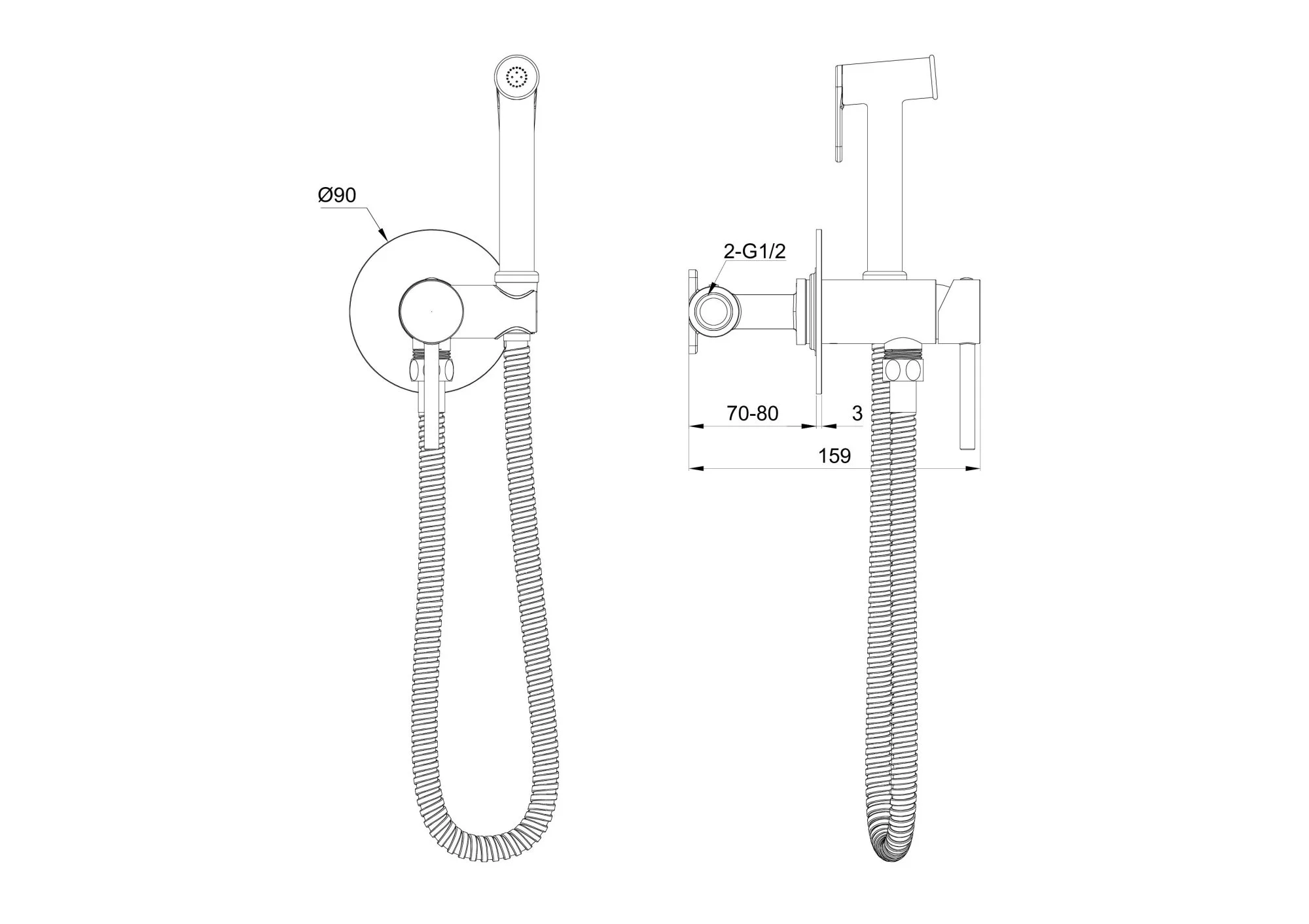смеситель, душевой шланг, держатель для душа, лейка гигиенического душа, монтажный комплект