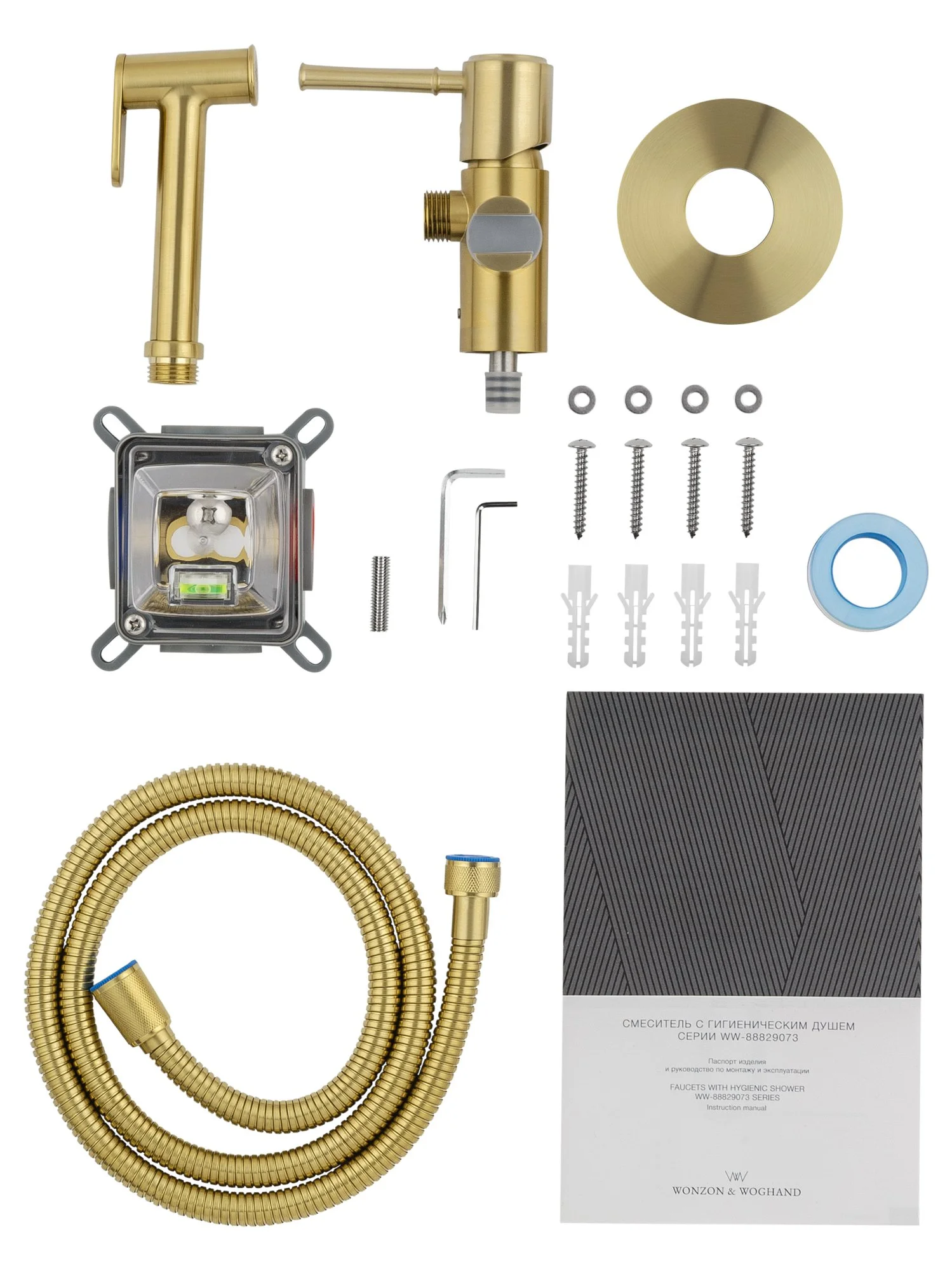 смеситель, душевой шланг, держатель для душа, лейка гигиенического душа, монтажный комплект