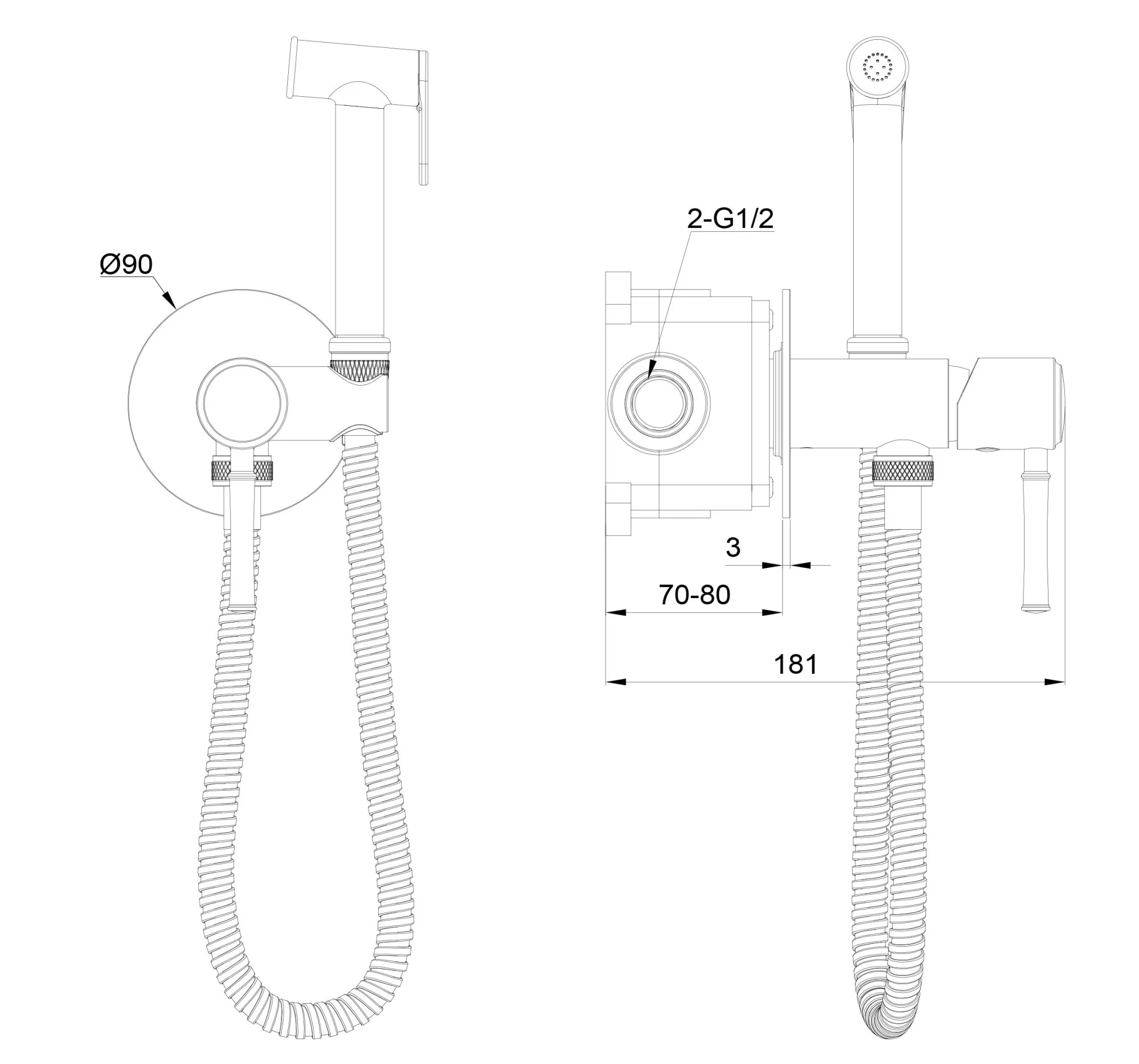 смеситель, душевой шланг, держатель для душа, лейка гигиенического душа, монтажный комплект