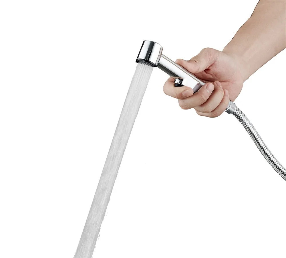 Гигиенический душ Agger AHYG01 можно использовать с любым стандартным шлангом. Он имеет надёжный кнопочный включатель воды. В комплект входит настенный держатель.