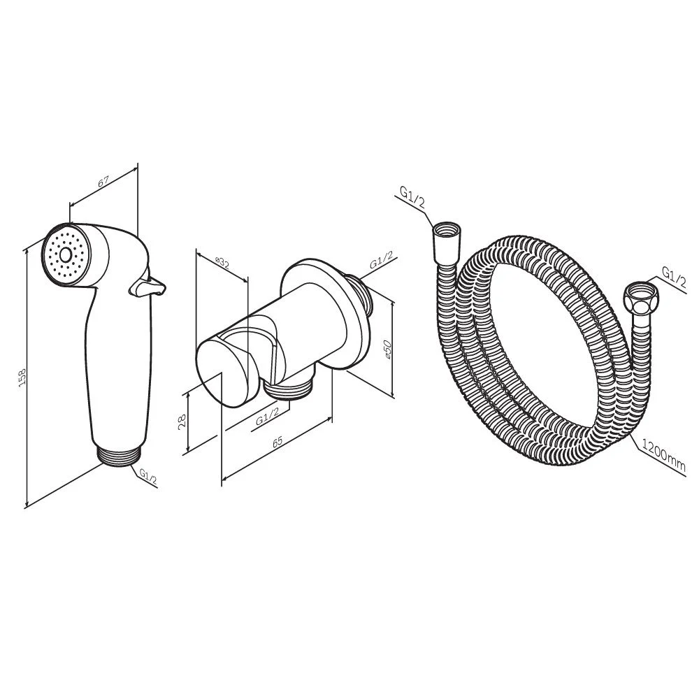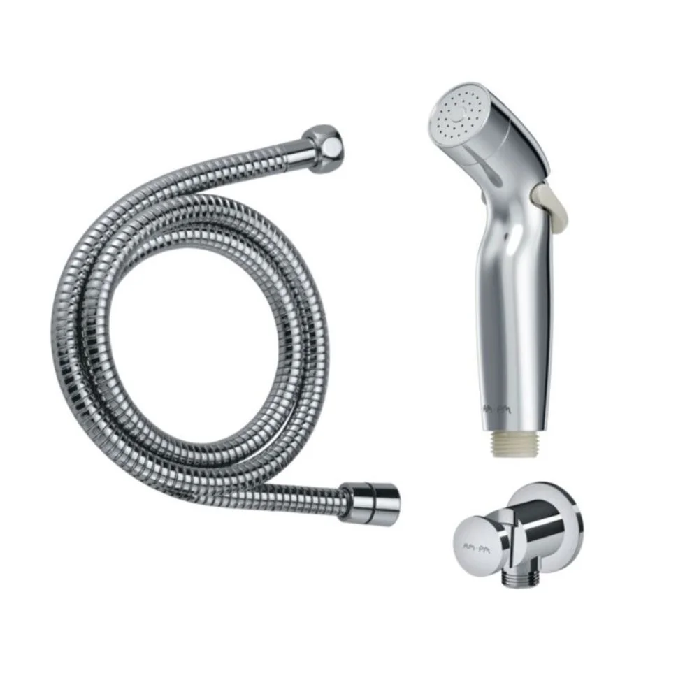 Лейка для гигиенического душа со шлангом и держателем для удобного использования и поддержания гигиены. Минималистичный дизайн и настенная установка прекрасно впишется в небольшие санузлы. Система быстрой и точной установки душевого присоединения позволит установить гигиенический душ самостоятельно. Шарнирное соединение защищает душевой шланг от перекручивания. Длина душевого шланга 1500 мм для комфорта. Диаметр лейки составляет 33мм. Один режим гигиенического душа: Spray. ""