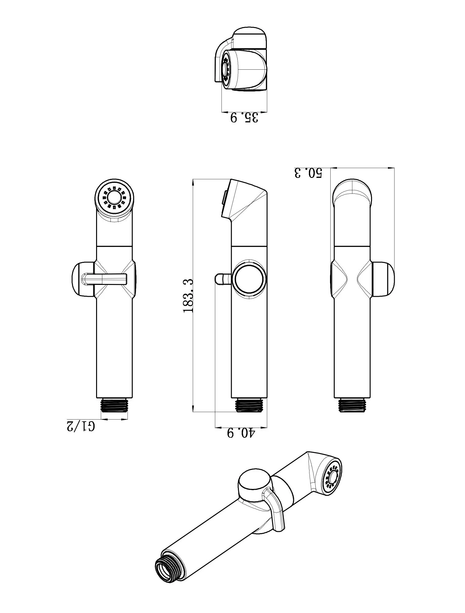 Гигиенический душ, Настенное крепление, Стальной шланг 1,5 м