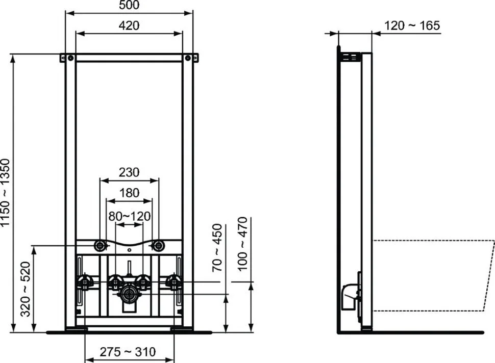 PROSYS Рама для монтажа подвесного биде. Для монтажа перед капитальной стеной или между двумя гипсокартонными стенами. Рама тестирована нагрузкой 400 кг; устойчива к коррозии и царапинам. Легкая и быстрая установка при помощи системы EasyFix system. Регулировка высоты от 0 до 200 мм. Минимальная толщина 120 мм. Регулируемые монтажные кронштейны. Аксессуары в комплекте: крепежи для биде, крепежи для рамы, сливной патрубок, подключение для воды G 1/2 , 2 шт.